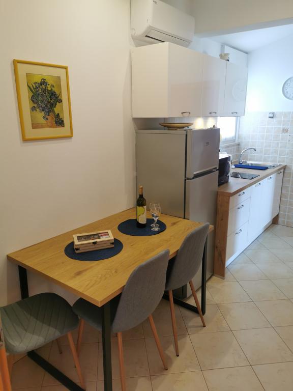 Odsjeli smo u apartmanu broj 1. Nije daleko od plaže i centra Fažane. Smještaj je potpuno nov, ima: dvije spavaće sobe, perilicu rublja u kupaonici, klima uređaj, indukcijske ploče koje su vrlo jednostavne i praktične za korištenje, veliki stol vani na terasi, privatni parking dobro natkriven pergolom. Gospođa Irena ostavila nam je piće u frižideru i svu posteljinu i ručnike. Irena je bila jako ljubazna i gostoljubiva, davala nam je savjete i stavljala se na raspolaganje za sve. Toplo preporučujem ovaj smještaj!