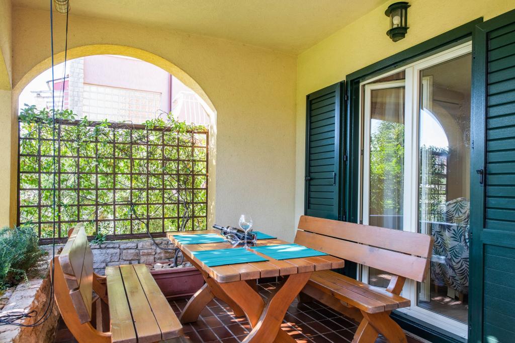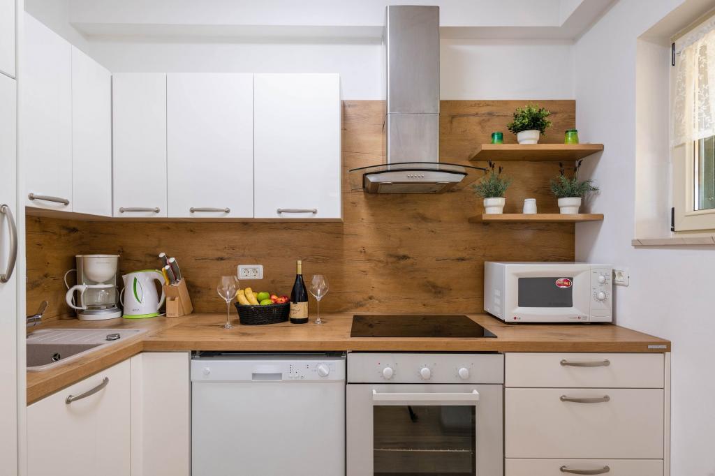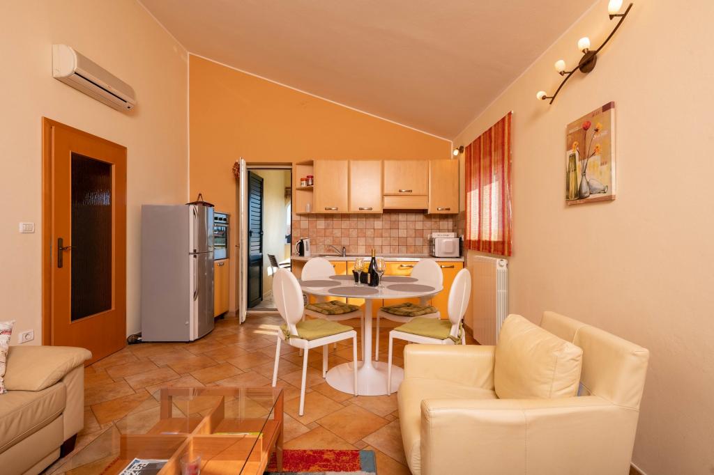 Apartman je opremljen sa svime što vam je potrebno. Udobna šetnja od 10 minuta do plaže. Vrijedi istražiti zaleđe. Domaćini su vrlo srdačni i brižni ljudi, uvijek dostupni za pitanja ili nedoumice. Kad Nada nešto ispeče, Zdravko nešto donese, uključujući vino i travaricu. Usput, Zdravko jako dobro govori njemački i uvijek daje savjete za izlete ili ... Lijepo je sjediti na natkrivenoj terasi. Sve u kući i oko nje je vrlo dobro održavano. Bicikli su dostupni za odlazak u pekaru ili supermarket.