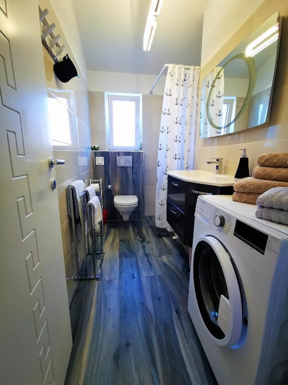 Naša četveročlana obitelj ljetovala je u Petrovom i Ljubičinom apartmanu od 30.6. do 15.7. Luksuzan, udoban, prostran, svijetao, dobro namjesten i kompletno opremljen MI uredjajima i aparatima stan. Kristalno čisto. Kreveti su vrlo udobni, ima dovoljno prostora za opuštanje i harmoniju. Zahvaljujemo divnim vlasnicima Petru i Ljubici na gostoprimstvu, vrhunskom komforu i ljepoti okoline. Restoran na suprotnoj strani ulice miran je cijeli dan, a od poslijepodneva nudi ukusnu pizzu. Parkirno mjesto je dovoljno veliko za SUV pune veličine.
