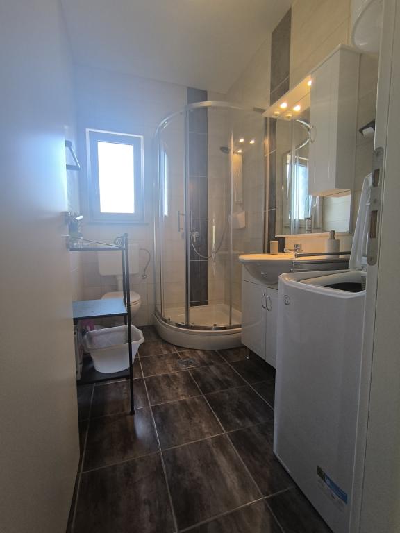 To je ono što smo godinama tražili u Hrvatskoj - prostran, udoban apartman u prizemlju za do 6 osoba, s terasom među maslinama, u mirnom okruženju. Puno prostora u sobama i opreme za dugi boravak - veliki hladnjak, kuhinja s perilicom suđa i mikrovalnom pećnicom, perilica rublja i puno drugih korisnih stvari. Apartman je čist, njegovan, profinjen i savršeno namješten. Prozori imaju komarnike i rolete za zamračivanje, kao i klima uređaj koji vam omogućuje odmor od vrućine. U susjednoj kući žive vrlo ljubazni i komunikativni domaćini, uvijek možete računati na njihovu pomoć i dragocjene savjete. Osim toga, možete kupiti maslinovo ulje ovog OPG-a. Hvala gospođi Suzani na gostoprimstvu, sigurno ćemo se opet vratiti! Pozdrav iz Poljske - Bartek i njegova obitelj