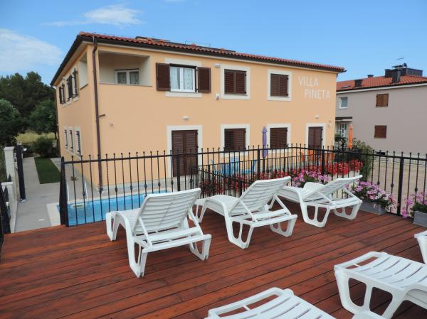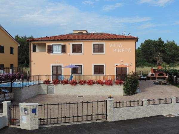 Villa Pineta, smještena u Fažani, u blizini Nacionalnog parka Brijuni i nadomak kampa Pineta, od plaže udaljena svega 650 metara, nudi nezaboravan odmor u svojih 5 moderno opremljenih i komfornih apartmana. Smještaj u villi sa pogledom na more omogućava opuštanje, užitak u svježem morskom zraku i blagodatima obližnje borove šume, rekreaciju i aktivan odmor. Apartmani su klimatizirani sa besplatnim pristupom internetu i sa SAT TV. Za svaki apartman su osigurana dva parkirna mijesta. Parking je ograđen i pod nadzorom sigurnosnih kamera.