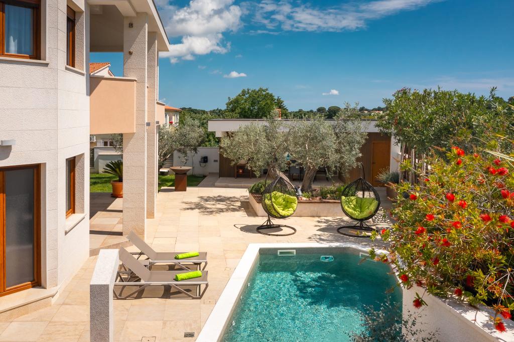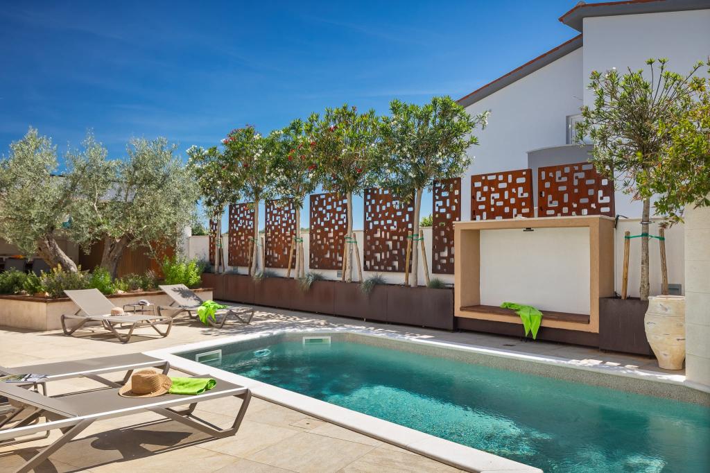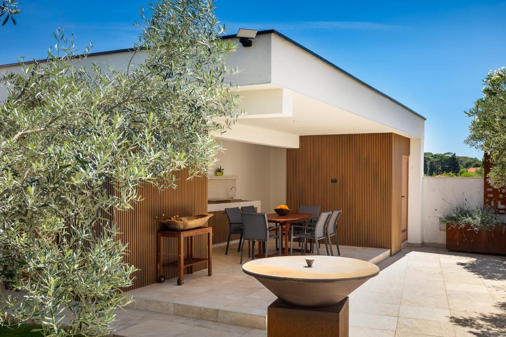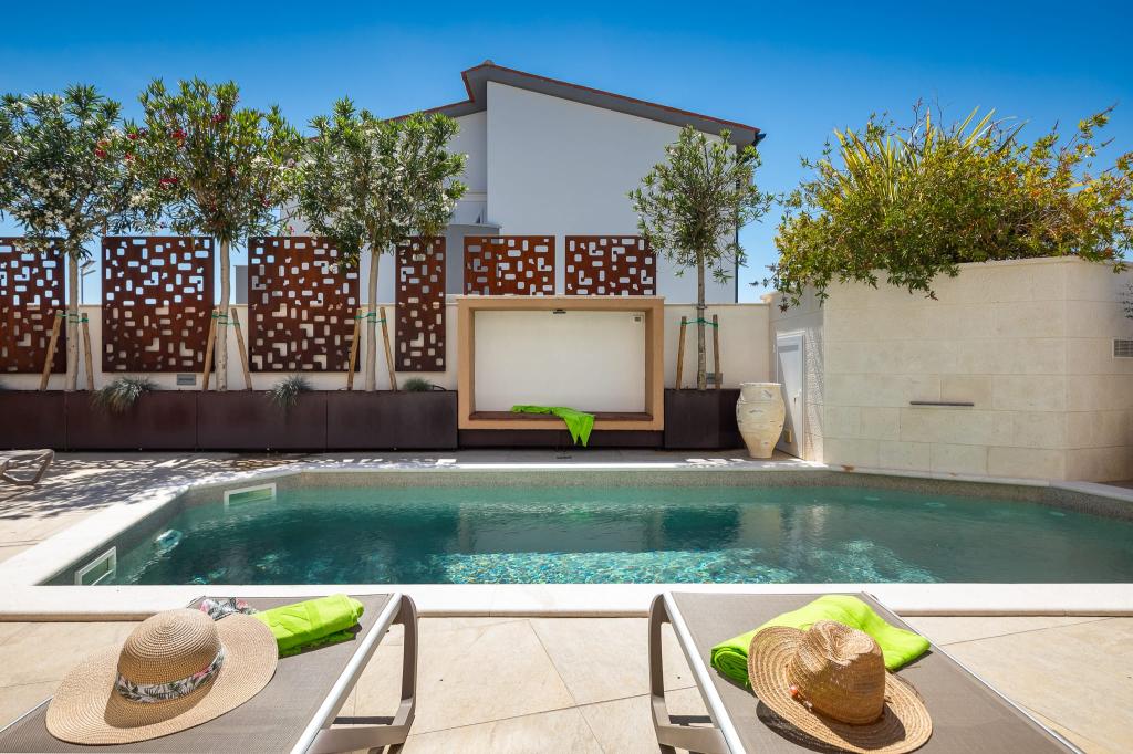 NEW 2024 Apartmani Luksuzne Ville Pliško Wellness & Spa **** Nalaze se u mirnom dijelu Fažane,500m od mora te predstavlja savršen balans između blizine plaže i tišine prirodnog okruženja. Skroviti položaj Ville idealan je prostor za odmor i opuštanje-bilo da želite uživati u jutarnjoj kavi dok slušate prirodu, opustiti se u bazenu Ville, prošetati do mora, prepustiti se večernjem miru ili provesti svoje romantične i opuštajuće trenutke u ugodnom ambijentu wellness prostora. Na ovakvom mjestu blizina mora pruža energiju i svježinu dok skroviti položaj omogućuje bijeg od gužve i potpunu relaksaciju. Villa Pliško nudi 3 apartmana nenadmašnog stila, funkcionalnosti i okruženja bez stresa .Wellness & Spa centar za opuštanje i korištenje vanjskog bazena Našim gostima poklanjamo besplatno korištenje 2 h Wellness & Spa prostora za 2 osobe u terminu boravka i neograničeno korištenje vanjskog bazena sa slanom vodom Boravak u Villi namijenjen je isključivo odraslim osobama (+18 god)