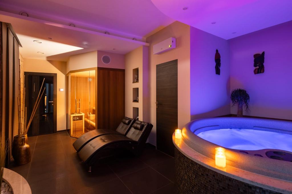 Villa Pliško svojim gostima poklanja : -1 x 2h korištenja Wellness & Spa privatnog prostora za 2 osobe u terminu boravka, piće dobrodošlice. U cijenu smještaja uključeno je: -zajednička uporaba bazena sa ostalim gostima Ville, -zajednički vanjski prostor za druženje sa opremljenom kuhinjom, garniturom za sjedenje, grillom te vanjskim toaletom -korištenje fitness prostora -posteljinu, ručnike, -praonu sa perilicom za rublje i sušilicom - parking -čišćenje Villa Pliško nudi 3 apartmana nenadmašnog stila, funkcionalnosti i okruženja bez stresa te privatnim terasama. Fitness prostor koji je namjenjen svim gostima Ville. Wellness & Spa je moderan, romantičan, luksuzan te privatni prostor za vaše opuštanje. Nalazi se u sklopu objekta naše ville. Opremljen kupatilom te prostorom u kojem se nalazi jacuzzi, finska sauna, opuštajući masažni ležaji. Provedite svoje romantične i opuštajuće trenutke u ugodnom ambijentu wellness centra.