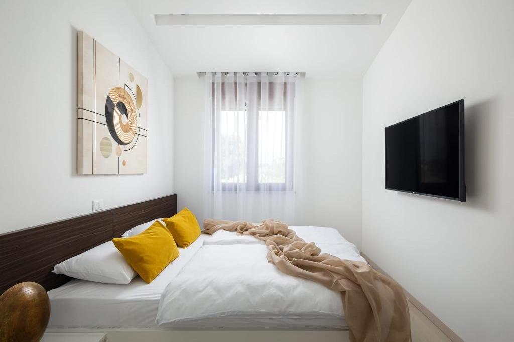 Pročitaj više Smještajne jediniceUpiti o slobodnim terminima i rezervacije smještaja isključivo na upit. Rezervacija će biti valjana nakon plaćanja cijelog iznosa nakon čega ćemo vam poslati potvrdu rezervacije i račun. Osobno potvrđujemo rezervaciju mailom. U objektu nije moguće izvršiti plaćanje. U cijenu apartmana je uključeno: -2h korištenja wellness centra za 2 osobe -uporaba fitness prostora -uporaba vanjskog bazena -osigurani parking u sklopu objekta -posteljina, struja, voda i završno čišćenje -porezi i naknade Check in / Check out Dolazak u apartman poslije 15:00 Odlasci iz apartmana do 10:00