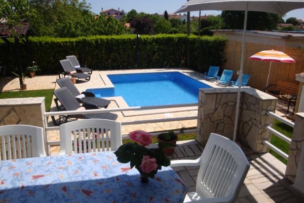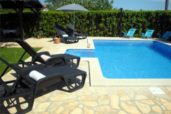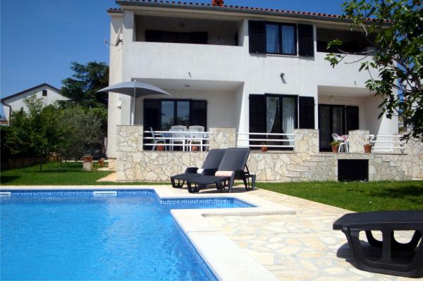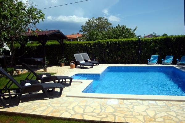 Kuća s apartmanima, s novim bazenom smještena na mirnoj lokaciji. Objekt se nalazi 10 minuta hoda do prekrasnih plaža s pogledom na nacionalni park Brijuni. Kuća ima dva apartmana u prizemlju. Svaki apartman ima GRATIS vlastiti parking, velike terase, vanjski grill s velikom terasom na korištenje i veliku okućnicu s potpuno novim bazenom.