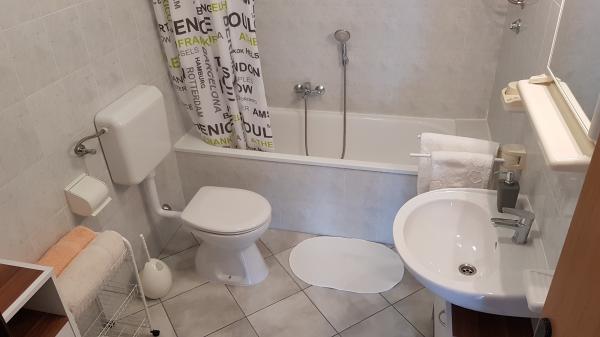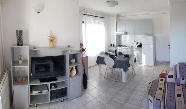 Proveli smo tjedan dana krajem srpnja u stanu 3 +1. Domaća je jako lijepo, ugodan i pun ljubavi, komunikaciji s njima problema. Čak su i sami došli do vas upozoriti da su neke ceste zatvorene prema kući. Stan je vrlo udobna i čista, mi nije nedostajalo ništa. Vlasnici mislio i na sitnice poput pranja kosu ili Raid protiv komaraca. Bazen je za nas kao dobrodošao prednost, posebno kul za jutarnje vožnje, uz plažu. JA visoko preporučiti svima.