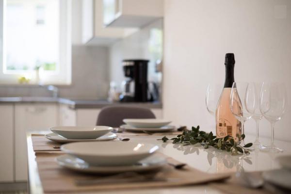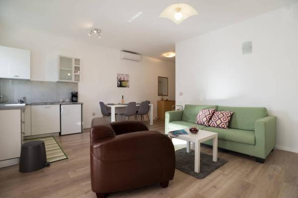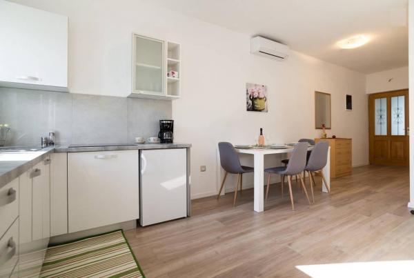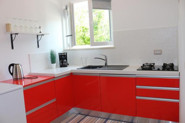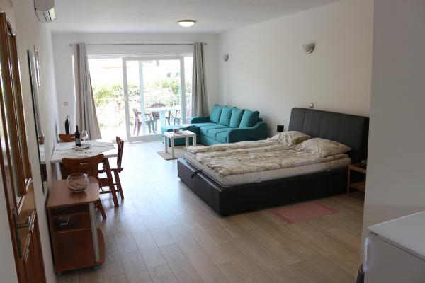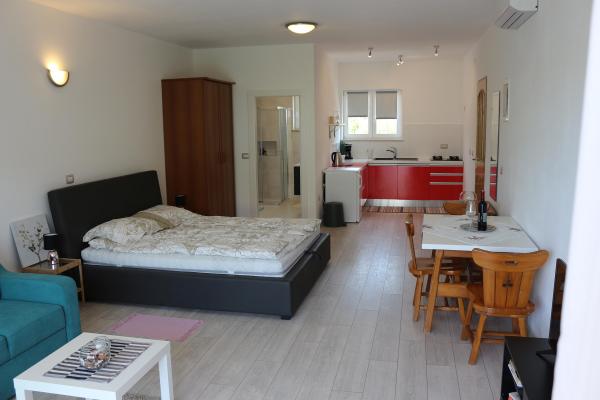 U našoj ponudi nalaze se potpuno novi, moderni i luksuzno opremljeni apartmani. U prizemlju se nalaze studio i mali apartman za 4 osobe, dok je cijeli prvi kat rezerviran za veliki apartman koji može smjestiti maksimalno 6 osoba. Uz zvukove prirode koja nas okružuje, vjerujemo da ćete uživati u Vašem odmoru. Za sve goste imamo veliki i prostrani vrt u kojem možete provoditi vaše slobodno vrijeme. Tu je i grill za sve koji žele pripremati mediteranske specijalitete.