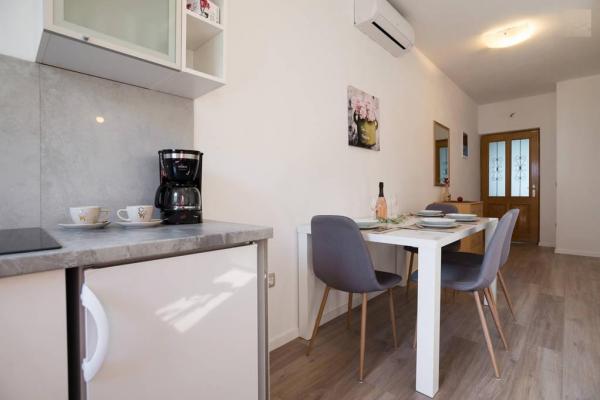 Turistička pristojba je uključena u cijenu.Smještaj je identičan kao na fotografijama. Udoban, pametno iskorištena kvadratura, prostraniji nego što se čini gledajući fotografije. Studio ima vrlo lijep balkon / manju terasu koja se može iskoristiti ljeti za osvježenje i opuštanje. Studio je opremljen klima uređajem - zimi grijanje, ljeti hlađenje. Kuhinja je opremljena potrebnim posuđem i priborom za jelo, ima i kuhalo za vodu. Udaljenost plaže od smještajne jedinice je oko 10min pješke u jednom i oko 15min pješke u drugom smjeru. Kupalište u smjeru sjevera ima ulaz za invalide. Iz Funtane se može uz more doći pješke do Poreča, šetnja traje oko 2.5h - vrlo lijepa panorama, miris crnogorice, prolazi kroz Lagunu Poreč (Bijela uvala, Zelena i plava laguna). U mjestu izvan sezone rade 2 manja dućana - Istarski supermarketi. Nekih 4km južno je mali istarski gradić Vrsar - pješke oko 30-40min, a između Funane i Vrsara je kamp Valkanela. Vrsar je vrlo lijep za razgledati. U Vrsaru je veći Konzum. Domaćin je vrlo ljubazan i susretljiv. Smještaj nas je dočekao uredan i pripremljen za boravak. Domaćin je bio dostupan za pomoć / pitanja u svakom trenutku. Smještaj preporučujem parovima, obiteljima, gostima koji bi radije boravili u manjem mjestu, koji vole prirodu i koji vole pješačiti. Automobilom je sve u blizini dostupno u roku 10min (Laguna, grad Poreč, grad Vrsar). Za sve željne mira i tišine, preporučujem boravak i u zimskom razdoblju - napomena je da je tada manja dostupnost ugostiteljskih usluga, iako i u tom razdoblju ima u samom mjestu aktivnih objekata.