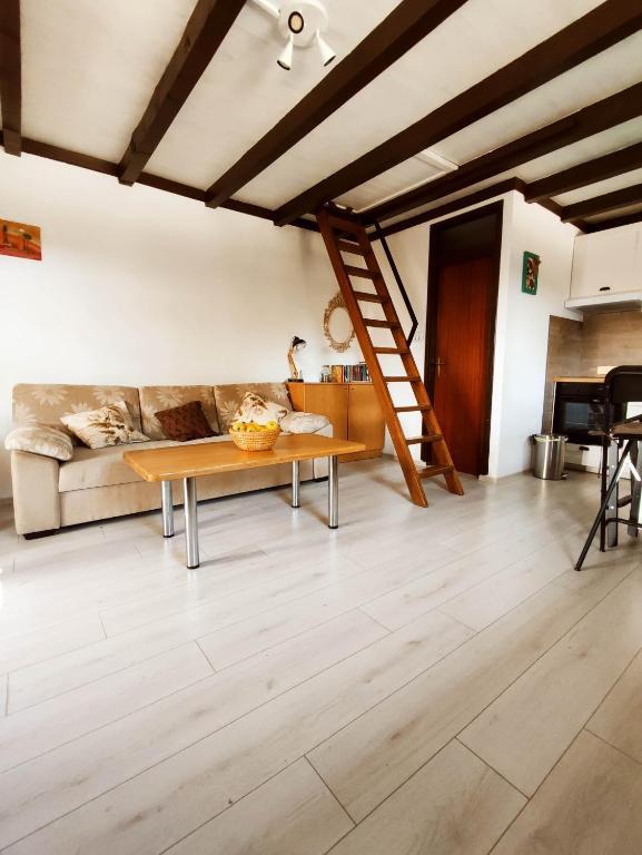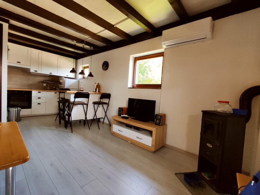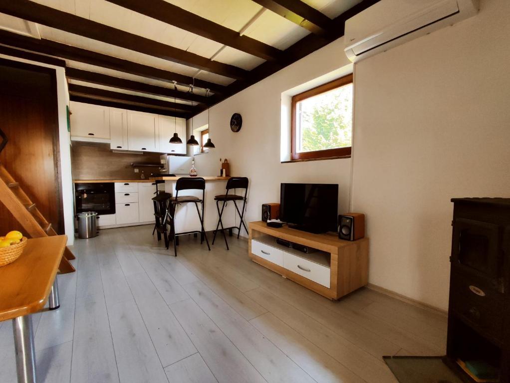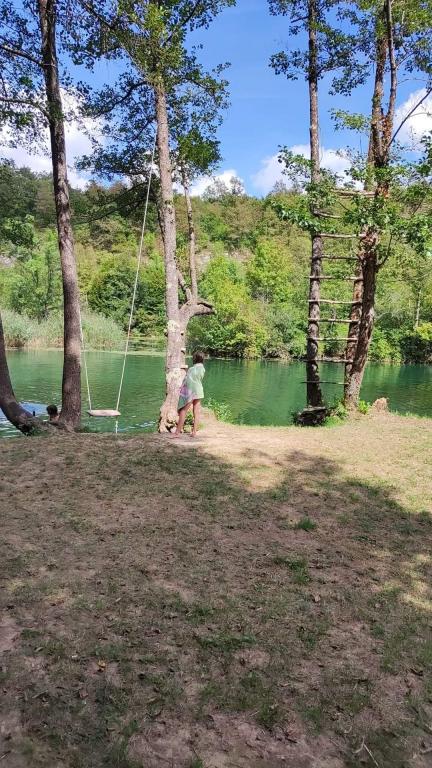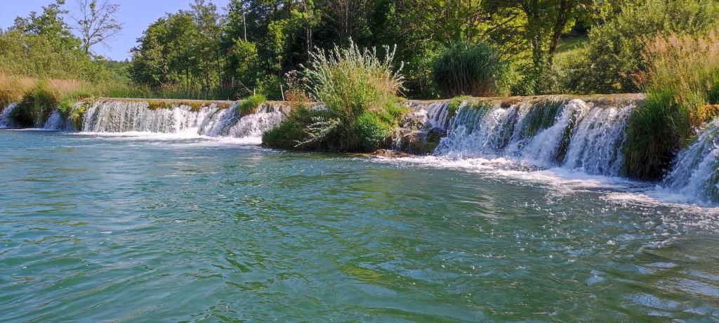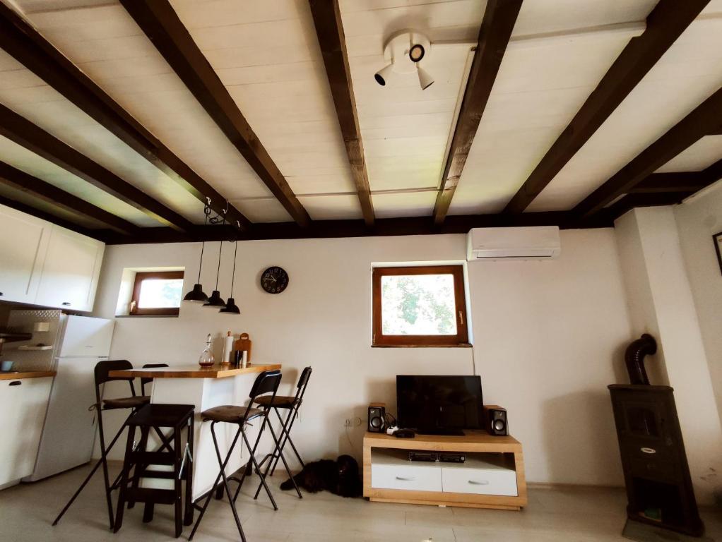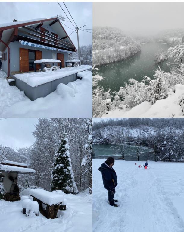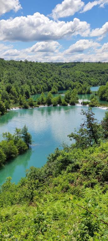 Mala kuća koja će u potpunosti zadovoljiti i zahtjevnije posjetitelje. U kući ćete naći sve što vam treba za bezbrižan boravak, a do rijeke i prekrasnog slapa imate par minuta pješke (300m). Kuća se nalazi u vrlo mirnom mjestu. U centru mjesta su 2 dućana, pošta i kafić. Kuća ima pogled na rijeku i slap. S obzirom da se radi o dvojnom objektu, moguće je iznajmiti i susjedan apartman (5 osoba). Apartman se u prizemlju sastoji od kuhinje (frižider s ledenicom, pećnica i 4 ringa na struju, svim potrebnim posuđem i kuhinjskim pomagalima), dnevnog boravka (kauč na razvlačenje, TV, glazbena linija, društvene igre, knjige) te kupaonom (WC, bide, tuš kada i lavabo). Na katu, potkrovlju je bračni krevet (160x200) i dva jednostruka kreveta (90x200) te manja terasa sa pogledom na slap. U stražnjem dvorištu nalazi se roštilj. Apartman je za maksimalno 5 osoba + dječji krevetić, a minimalna su dva noćenja. Kuća se nalazi u vrlo mirnom mjestu. U centru mjesta su dva dućana, pošta i kafić.