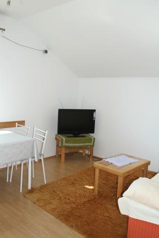 Dobro Došli u apartman Ćorluka s tri zvijezdice smiješten na katu obiteljske kuće koja se nalazi u prvom redu do mora. Udaljenost od plaže 100m, do centra, pošte, restorana 300 m, do kafića 50m i trgovina 10m. Apartman raspolaže sa dvije spavaće sobe, jedna sa braćnim krevetom a druga sa dva odvojena kreveta. Dnevni boravak sa trosjedom na razvlačenje, tv, klima, internet. Kuhinja opremljena sa mini blokom, frižiderom, mikrovalnom, aparatom za kavu, posuđem i priborom za jelo. Kuponica sa tuš kabinom i terasa sa pogledom na more