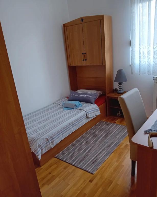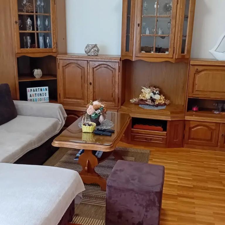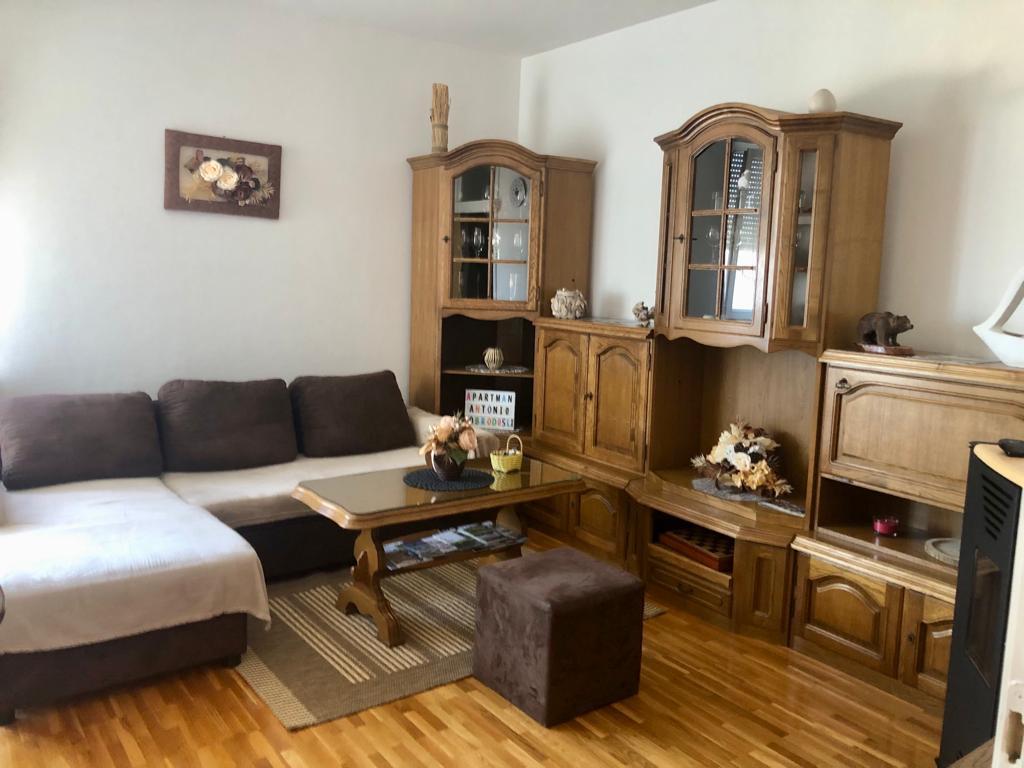 Apartman Antonio je kompletno opremljen dvoetažni apartman.Apartman je s 5 ležaja.Apartman ima: 1 veliki bračni krevet,1krevet za 1 osobu i pomoćni ležaj na razvlačenje za 2 osobe.Apartman ima 2 pokretne klime.Apartman je 150 met.od centra smješten na trgu u krasnoj mirnoj ulici. Na dohvat svih sadržaja trgovina,restorana,fast fudova ,kafića,apoteka,sportske dvorane,kolodvora tržnice.Apartman ima svoj parking osiguran električnom rampom.