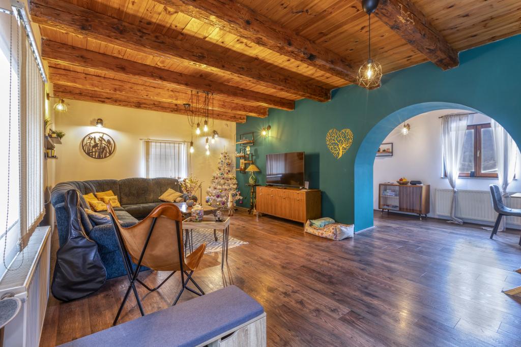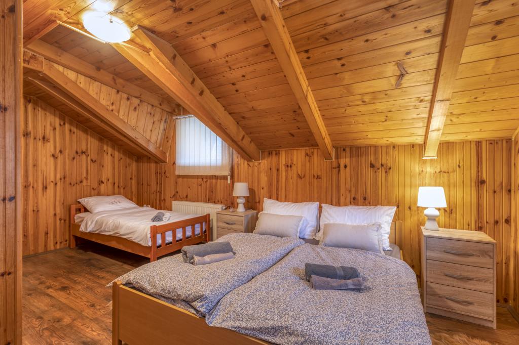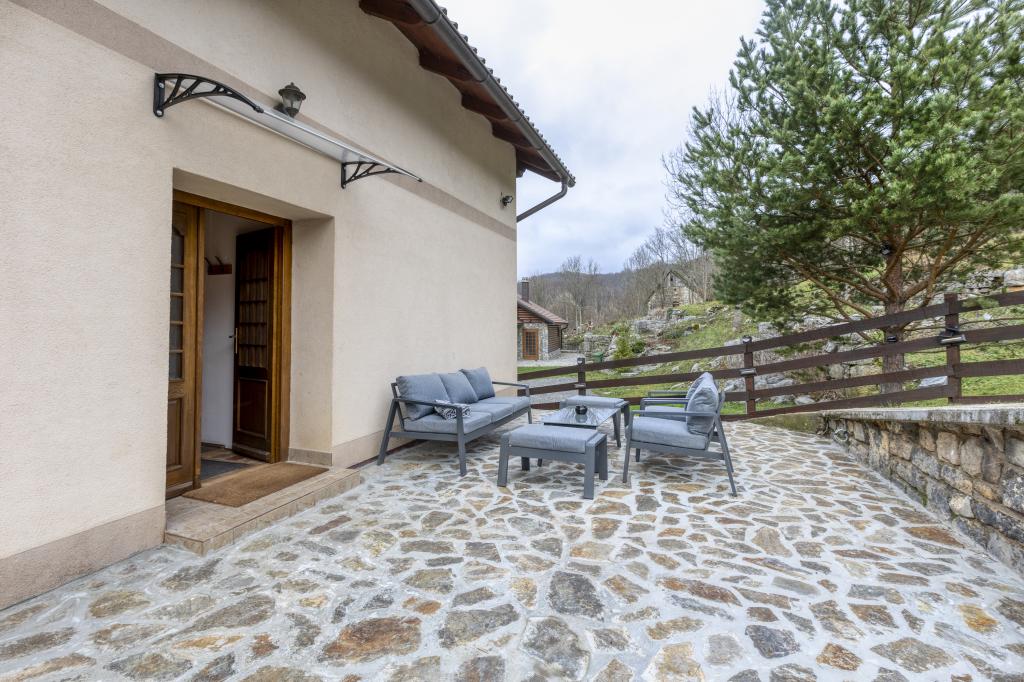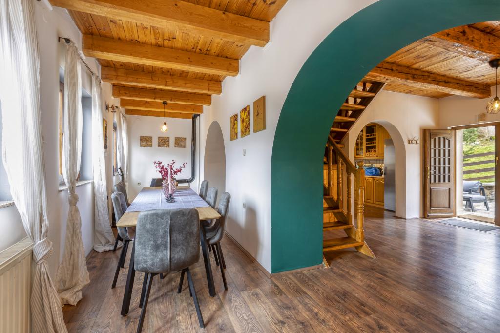 Kuća za odmor nalazi se u Parku prirode Velebit, samo 35 minuta od mora i 1 sat od Nacionalnog parka Plitvička jezera. Imanje je izolirano, s idiličnim pogledom na šumu i Velebit. Na imanju se nalaze 3 zgrade. Kuća na 3 kata, garaža i mala drvena kućica s velikim kamino i drvenim stolom. U kući ćete doživjeti ugodnu atmosferu s mnogo drvenih elemenata i udobnog namještaja. U prizemlju je veliki dnevni boravak, kuhinja i kupaonica. Prekrasne drvene stepenice odvest će vas na prvi kat gdje se nalaze 4 vrlo udobne sobe i kupaonica. U podrumu se nalazi igraonica sa biljarom, stolnim nogometom i pikadom. Interijer cijele kuće pažljivo je uređen, sa svime što vam je potrebno za maksimalnu udobnost i opušten boravak.