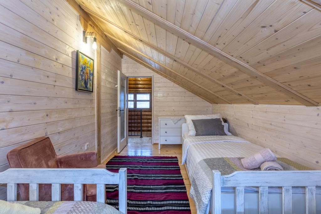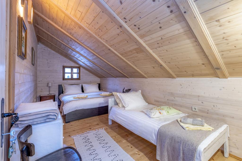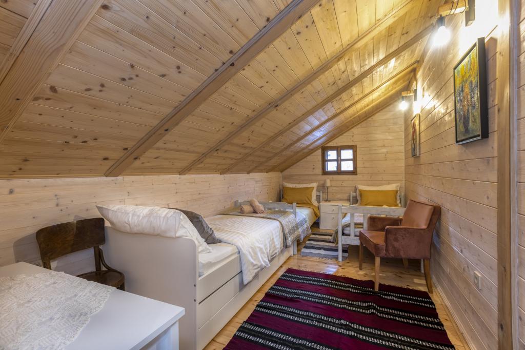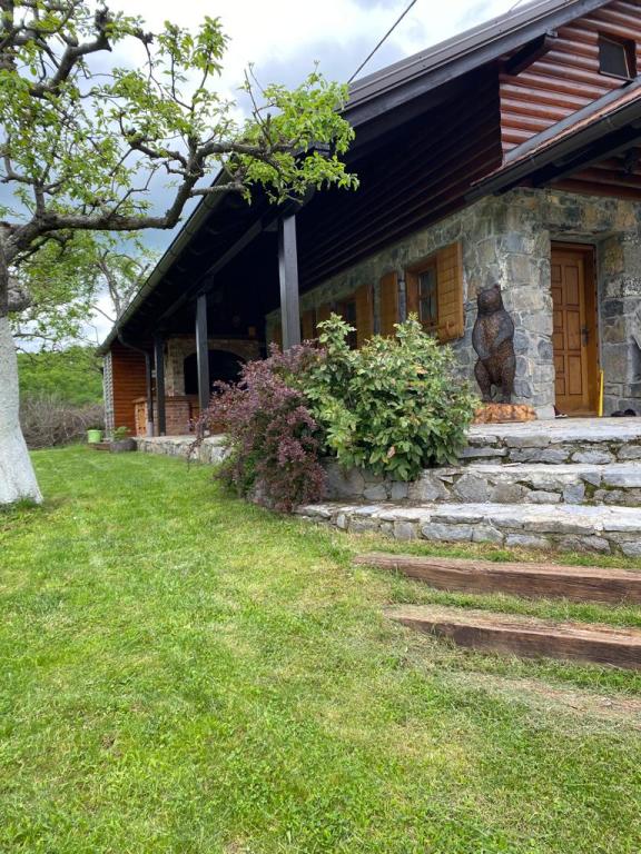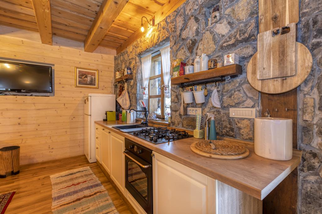 Kamena kuća na rubu šume okružena zelenim livadama sa prekrasnim pogledom na Velebit. Kuća se nalazi u pitoresknom selu Bužim. Sastoji se od dvije sobe na katu te velikim dnevnim boravkom, kuhinjom i kupaonom u prizemlju. Natkivene velike terase gdje je smješten roštilj te veliki drveni stol. Kuća je opremljena za ugodan i kvalitetan odmor te pruža idealno mjesto za Vaš odmor.