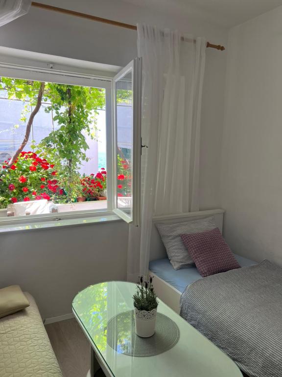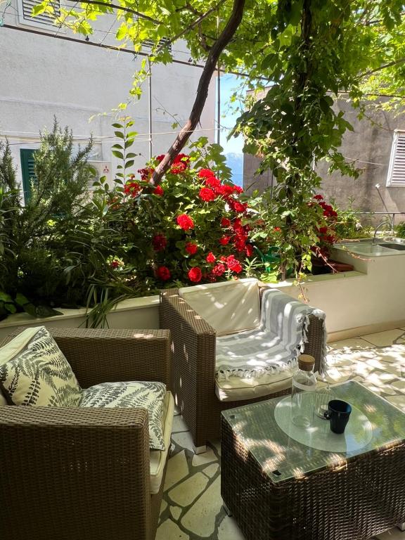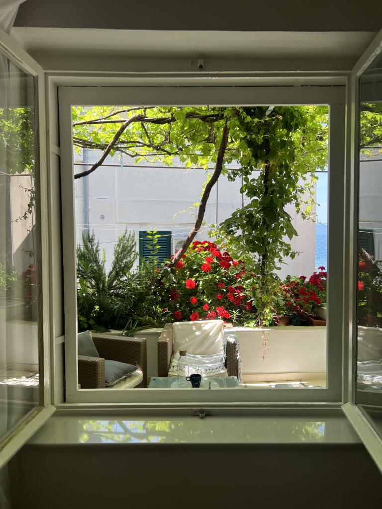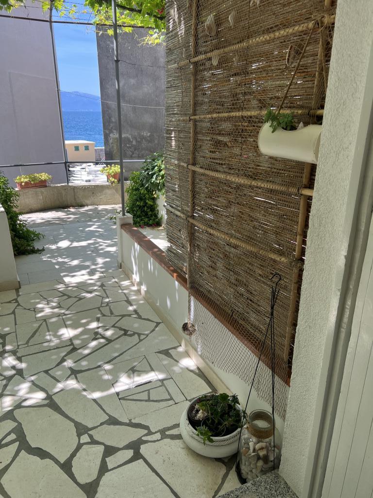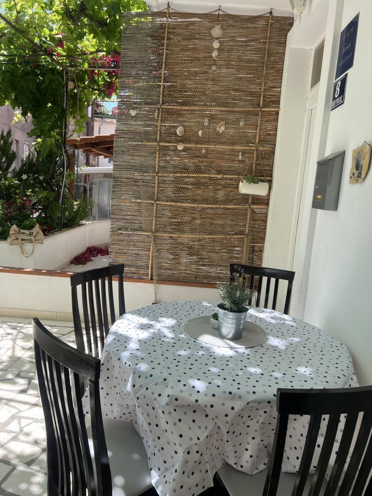 Apartman u obiteljskoj kući u starom predjelu Gradca. Nalazi se 2 minute hoda od plaže, mora i centra gdje se nalaze svi kafići i restorani, ali je skriveno od gužve i prolaznika. Objekt se nalazi u mirnom i uvučenom dijelu stare jezgre odmah pored porta. Klimatiziran je i ima besplatan wifi, Nalazi se u prizemlju kuće s velikom terasom i pogledom na more.