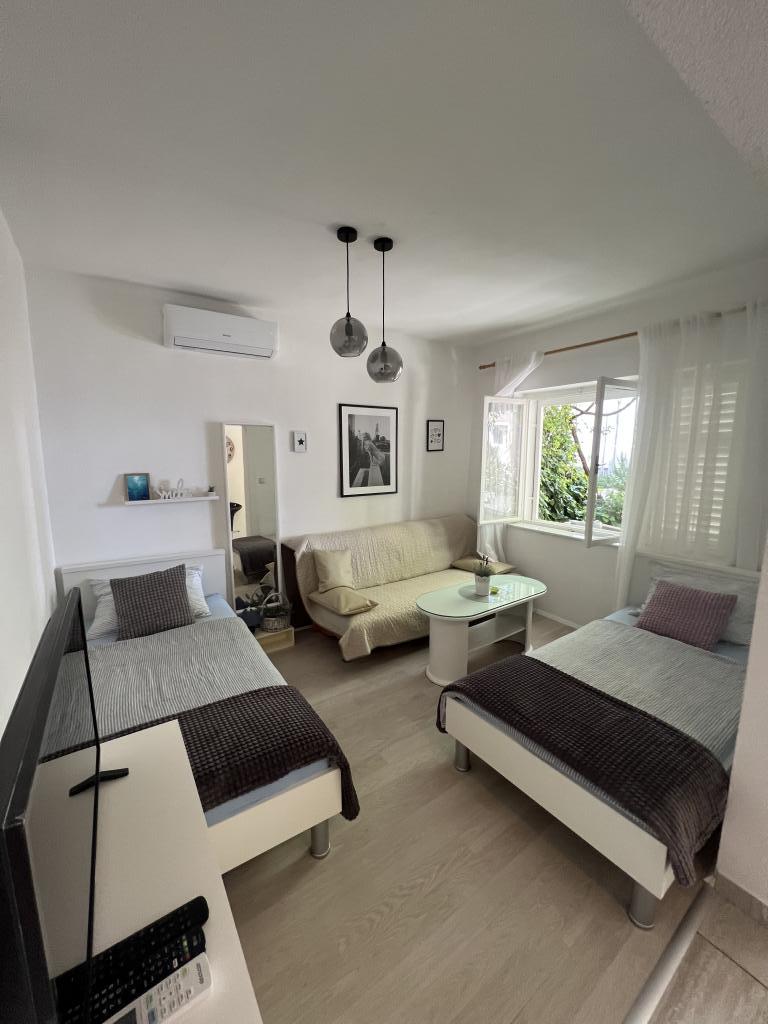 Apartman u samom centru Gradca, moderno namješten sa klimom, potpuno opremljenom kuhinjom, vrlo čist, sa velikom, natkrivenom terasom. Do mora u ravnoj liniji 15 metara, do glavnog trga u Gradcu i dalje do šetnice 20 metara. Teo je bio izvrstan i uslužan domaćin. Na pola našeg boravka promijenjeni su svi ručnici i posteljina. Savjet za buduće goste: ne vjerujte Google navigaciji kada dođete u Gradac - Teo je navigacija. Iskreno preporučam ovaj apartman.