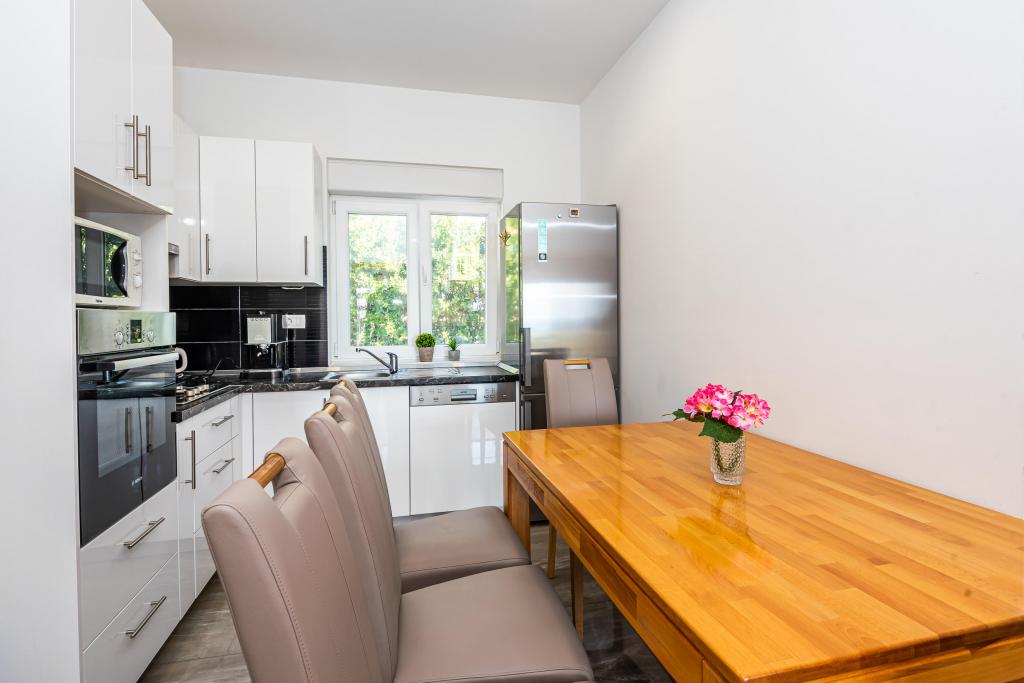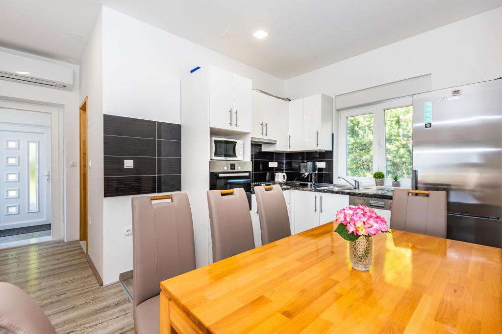 Moderno i novo renovirana kuća koja će pružiti idealan odmor svakom gostu koji se odluči posjetiti Makarsku Rivijeru. Mjesto Gradac odličan je izbor za obiteljski odmor, pruža svojim gostima nezaboravan doživljaj uživanja u najljepšem moru te sunčanja na prekrasnim plažama. Zbog svog savršenog položaja Gradac je omiljeno turističko odredište, udaljen od Splita i Dubrovnika oko 100 kilometara idealna baza za dnevne izlete i posjete najljepših Hrvatskih gradova. Objekt Nino nalazi se svega 200 m od plaže ili 3 minute laganog hoda, centar mjesta udaljen je oko 600 metara. Naš uređeni smještaj pružit će vam sve potrebno i za duži boravak ako se na to odlučite. Oprema doma sadrži- 3 spavaće sobe, 2 kupatila, kuhinju, dnevni boravak, predsoblje, hodnik, 2 balkona, 1 terasu sa pripadajućim namještajem, besplatno klimatizacija, parking, wi-fi, smart tv, netflix, perilica posuđa, perilica rublja, aparat za espresso kavu, videonadzor, elektro podizači zastora na svim prozorima...dobrodošli.