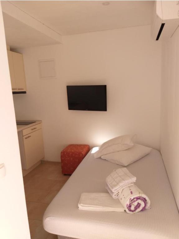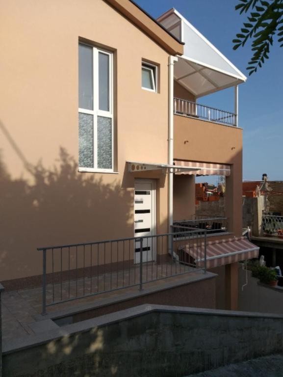 Apartmani Kolumbo Uživajte u boravku u Apartmanima Kolumbo, smještenima na idealnoj lokaciji, samo minutu hoda od prekrasne šljunčane plaže, glavnog trga, pizzerija i kafića. Objekt nudi tri smještajne jedinice. Sve jedinice su identično opremljene i uključuju: Klima uređaj i besplatan Wi-Fi. TV sa satelitskim programima. Vlastitu kupaonicu. Opremljenu kuhinju s pločom za kuhanje, mikrovalnom pećnicom, kuhalom za vodu i hladnjakom. Raspored smještajnih jedinica: Prizemlje: Dva apartmana s jednostavnim pristupom. Prvi kat: Apartman s terasom i pogledom na more. Svim gostima parking je osiguran. Ekskluzivna pogodnost u našem restoranu: Kao naši gosti, ostvarujete 10% popusta na ručak i večeru u našem porodičnom restoranu Restoran Marina. Uživajte u svežim lokalnim specijalitetima po povoljnijoj ceni.