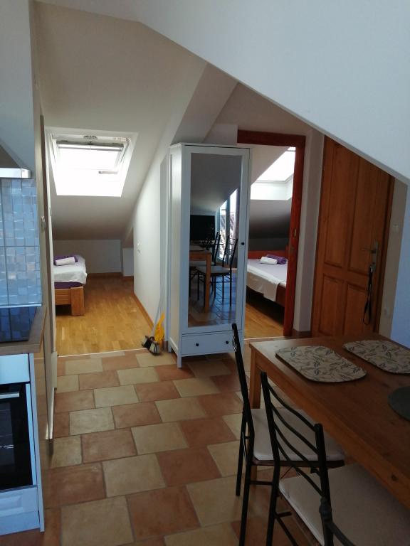 Apartment Lina potpuno je opremljen apartman u mirnom mjestu u blizini centra. Udaljen je 3 min hoda do plaže, te isto toliko do centra. Nalazi se na prvom katu privatne kuće te obuhvaća dnevni boravak spojen s kuhinjom, jednu spavaću sobu s bračnim krevetom i jednu spavaću sobu s 2 jednostruka kreveta te kupaonicu. Također ima balkon s pogledom na more. Opremljen je sa svim osnovnim kućanskim aparatima (frižder, pećnica, štednjak) te sadrži klima uređaj i TV te kauč na rasklapanje u dnevnom boravku. U cijenu je uključeno parkirno mjesto udaljeno 200 m od apartmana, no po dolasku u svrhu istrpavanja prtljage može se prići autom na udaljenost 30 m od apartmana. Domaćin se nalazi u istom mjestu te će po dolasku dočekati goste te im pokazati apartman i parking te uručiti ključeve.