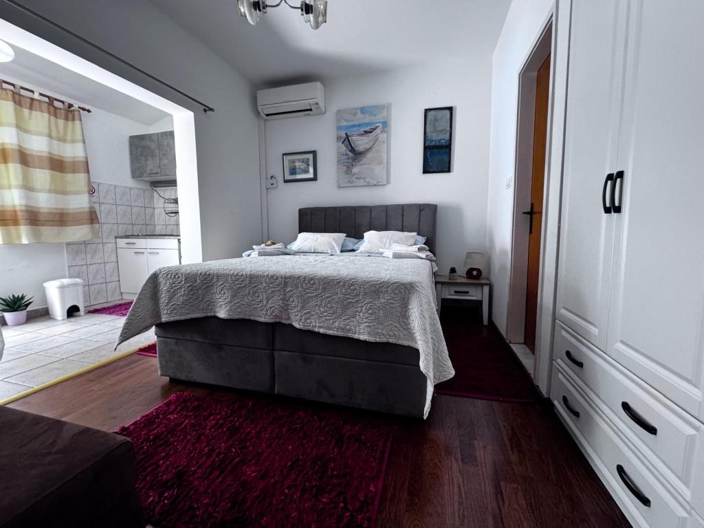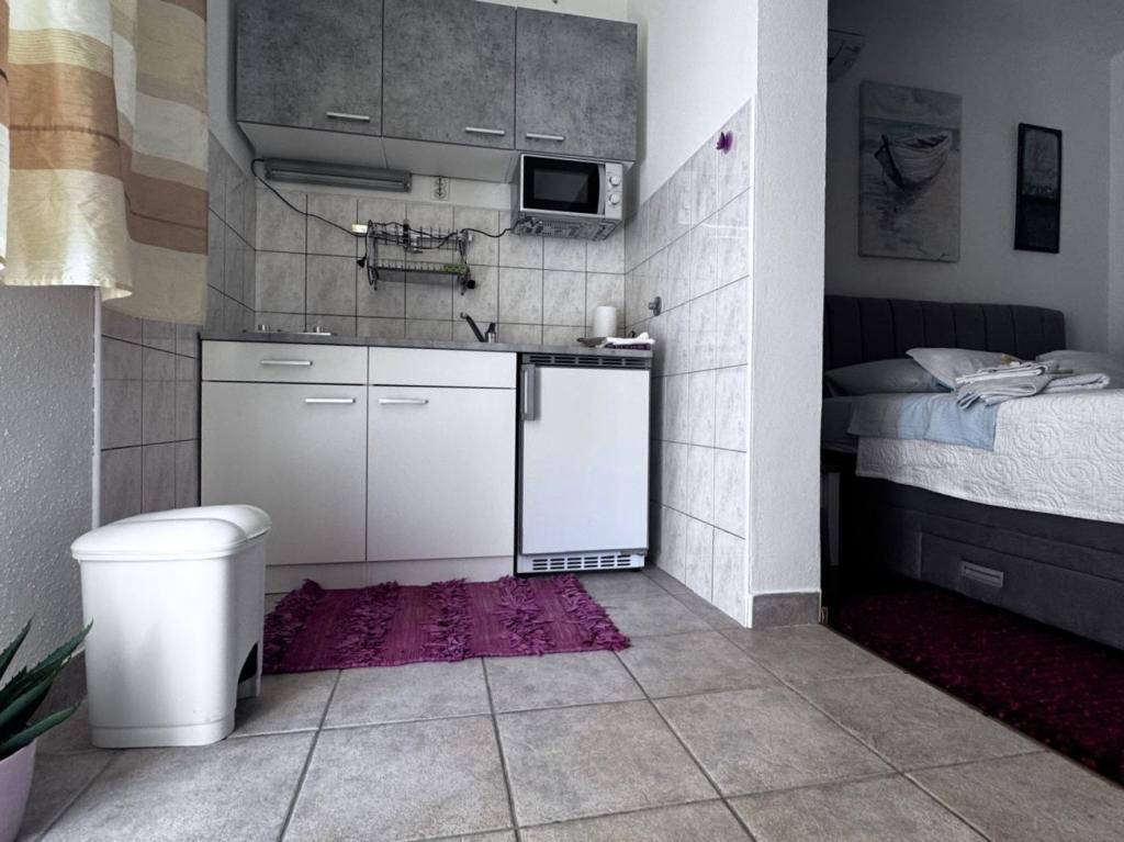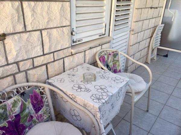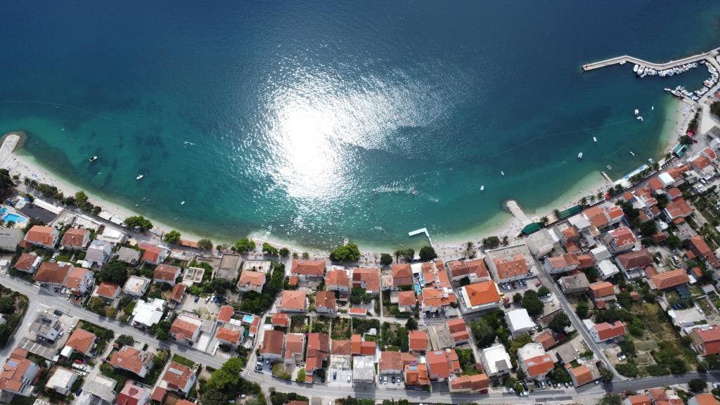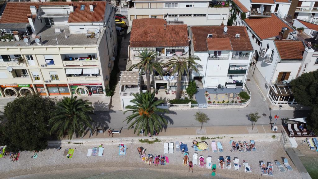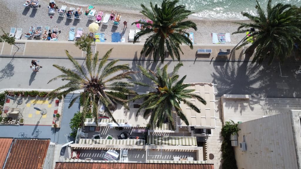 Iskreno preporučujem ovo mjesto za obitelji s djecom, parove ili starije osobe, apartman je ispunio sva očekivanja, čisti, udobni kreveti, perilica rublja, potpuno opremljena kuhinja s 4 plamenika, klima uređaj samo 10 sati dnevno, ali dovoljno, perilica rublja, toster, veliki hladnjak, mirno mjesto i prekrasan pogled, egzotična lokacija zgrade pored prekrasnih palmi, blizina mora i plaže koja je bila čista i nije bila pretrpana - bilo je otkriće, a ležaljke i suncobrani koji su uključeni u cijenu boravka stvarno su rijetki. Odmah do njega je Sudenac i lokal s ćevapima i krumpirićima, kad izađete iz zgrade pivnice su posvuda uz more i šetnicu, tu je i pekara u susjedstvu, a vlasnici Leo i Anita brinu da je sve dobro gosti. Čak i kad smo bili na cjelodnevnom izletu, rublje nam je skinuto prije oluje da se ne smoči, što je bilo jako lijepo.Ovo mjesto preporučam svima koji žele imati more na dohvat ruke, dobra cijena i nema velike gužve. Ravno područje za šetnju s kolicima i djecom također je veliki plus