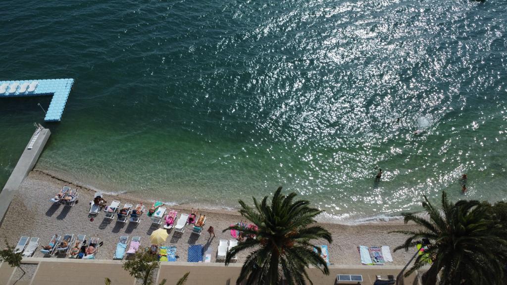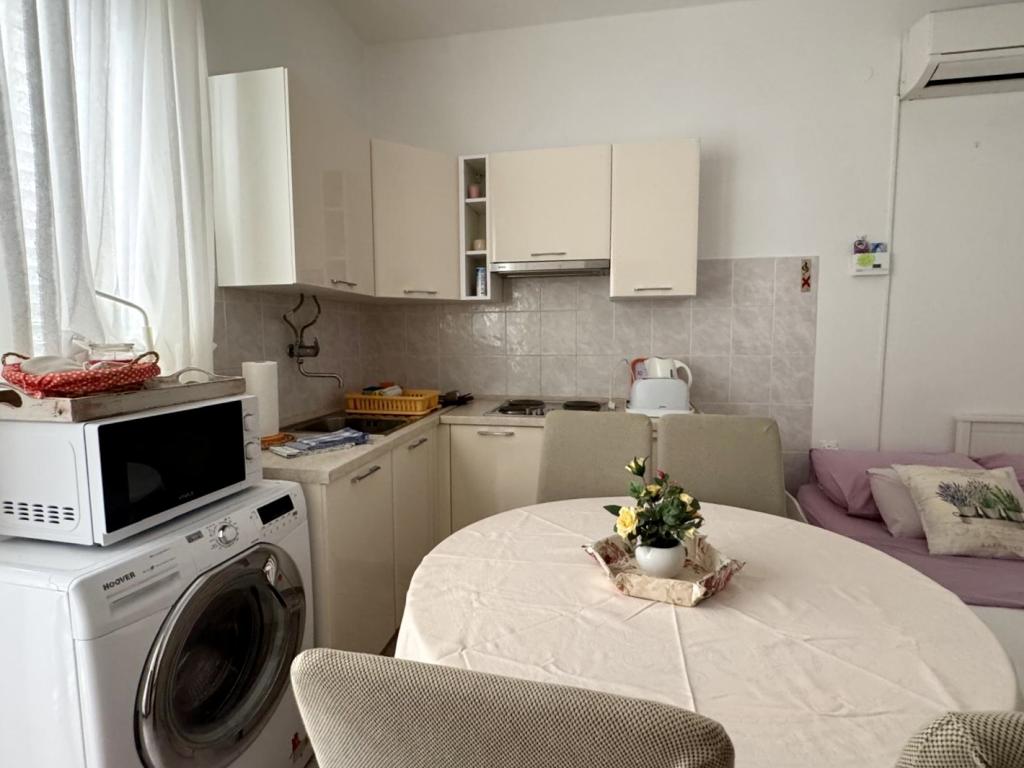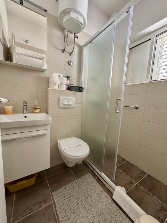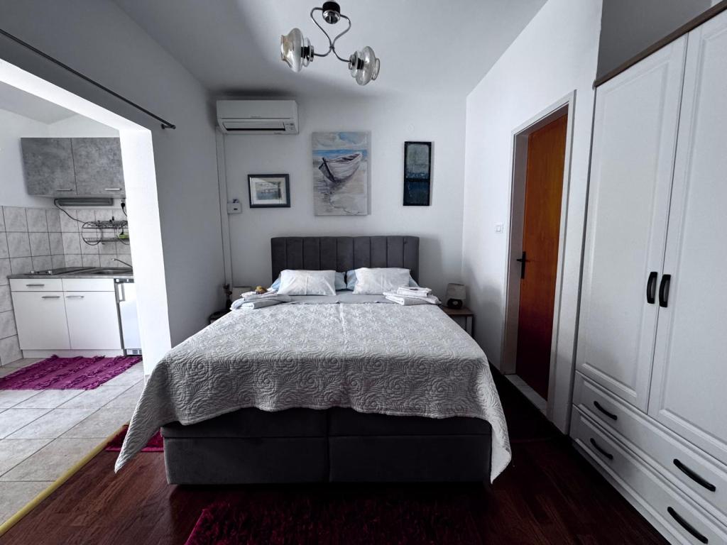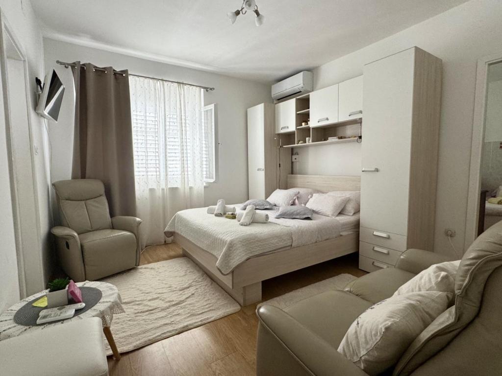 Iskreno preporučujem ovo mjesto za obitelji s djecom, parove ili starije osobe, apartman je ispunio sva očekivanja, čisti, udobni kreveti, perilica rublja, potpuno opremljena kuhinja s 4 plamenika, klima uređaj samo 10 sati dnevno, ali dovoljno, perilica rublja, toster, veliki hladnjak, mirno mjesto i prekrasan pogled, egzotična lokacija zgrade pored prekrasnih palmi, blizina mora i plaže koja je bila čista i nije bila pretrpana - bilo je otkriće, a ležaljke i suncobrani koji su uključeni u cijenu boravka stvarno su rijetki. Odmah do njega je Sudenac i lokal s ćevapima i krumpirićima, kad izađete iz zgrade pivnice su posvuda uz more i šetnicu, tu je i pekara u susjedstvu, a vlasnici Leo i Anita brinu da je sve dobro gosti. Čak i kad smo bili na cjelodnevnom izletu, rublje nam je skinuto prije oluje da se ne smoči, što je bilo jako lijepo.Ovo mjesto preporučam svima koji žele imati more na dohvat ruke, dobra cijena i nema velike gužve. Ravno područje za šetnju s kolicima i djecom također je veliki plus