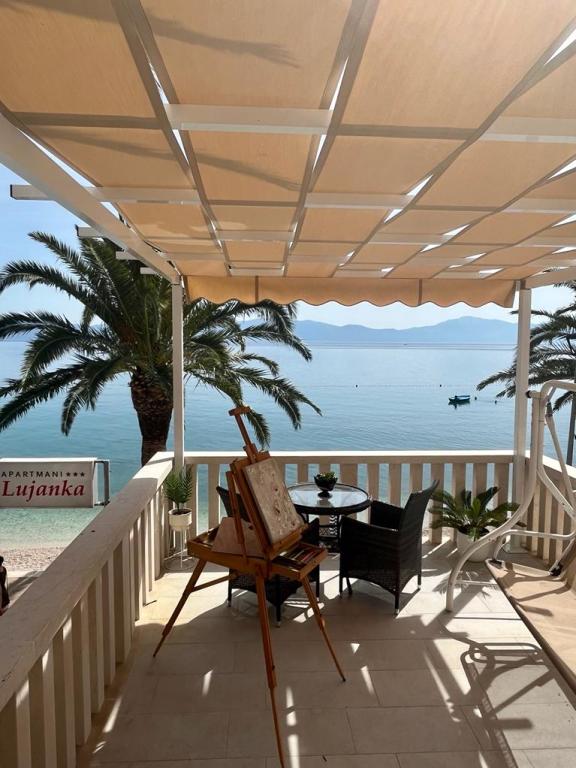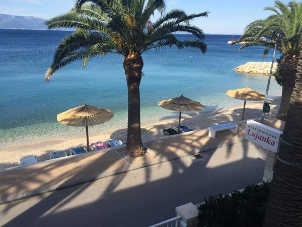Preporučujemo udoban, apartman Lujanka s toplinom za sve. Treći put provodimo ljetni odmor ovdje i ako imamo priliku vratiti se iduće godine. Veliki, nezaboravan smještaj! Naši dragi, korisni i pažljivi domaćini osiguravaju udobnost naših gostiju. Ima udobnih ležaljki na plaži. Neprestano daju svježe mirisne ručnike i zamjenu posteljine. S terase se pruža prekrasan pogled na more, a hladovina palmi je ugodna za kul. Apsolutno središnje mjesto je apartman. Na pješačkoj se ulici nalaze trgovine, pekare, restorani, kafići i restorani, a tijekom posljednjih 20 godina provodili smo mnogo odmora na Jadranu, ali ovo mjesto i smještaj postao je naš omiljeni! To je najprikladnije i praktično mjesto za opuštanje godišnjeg umora. Preporučujemo svima!