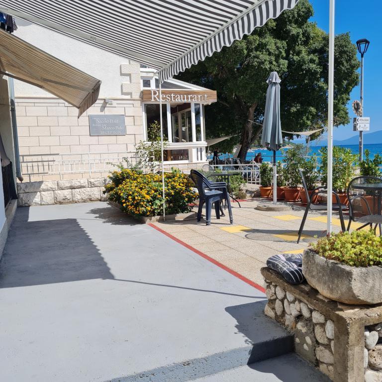 Prekrasan apartman, čist i dobro opremljen. Plaža je udaljena 5 m. Dvorište je lijepo uređeno i uredno , puno mediteranskog cvijeća. Vlasnici su vrlo susretljivi, nenametljivi. Ne smetaju im mala djeca, često se i poigraju s njima. Sve preporuke.