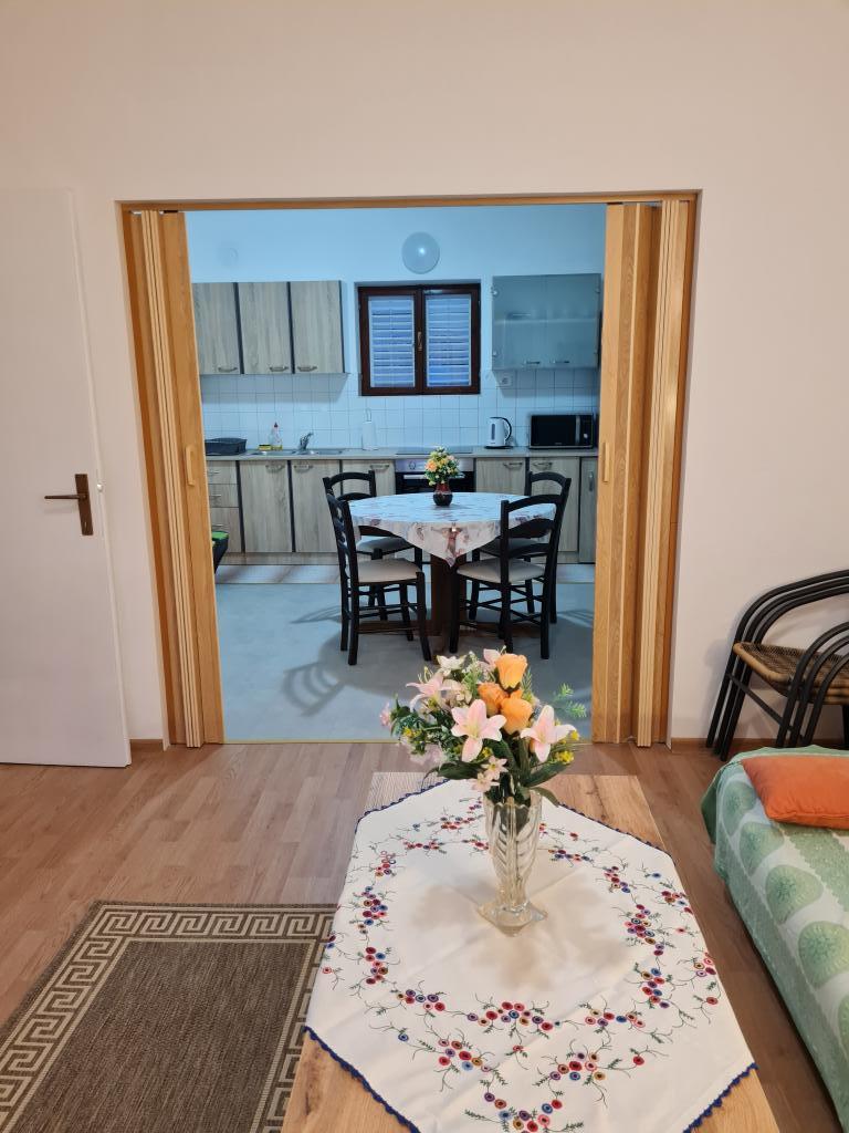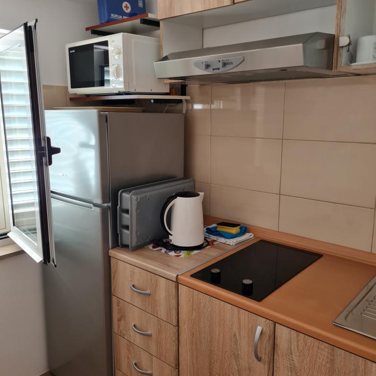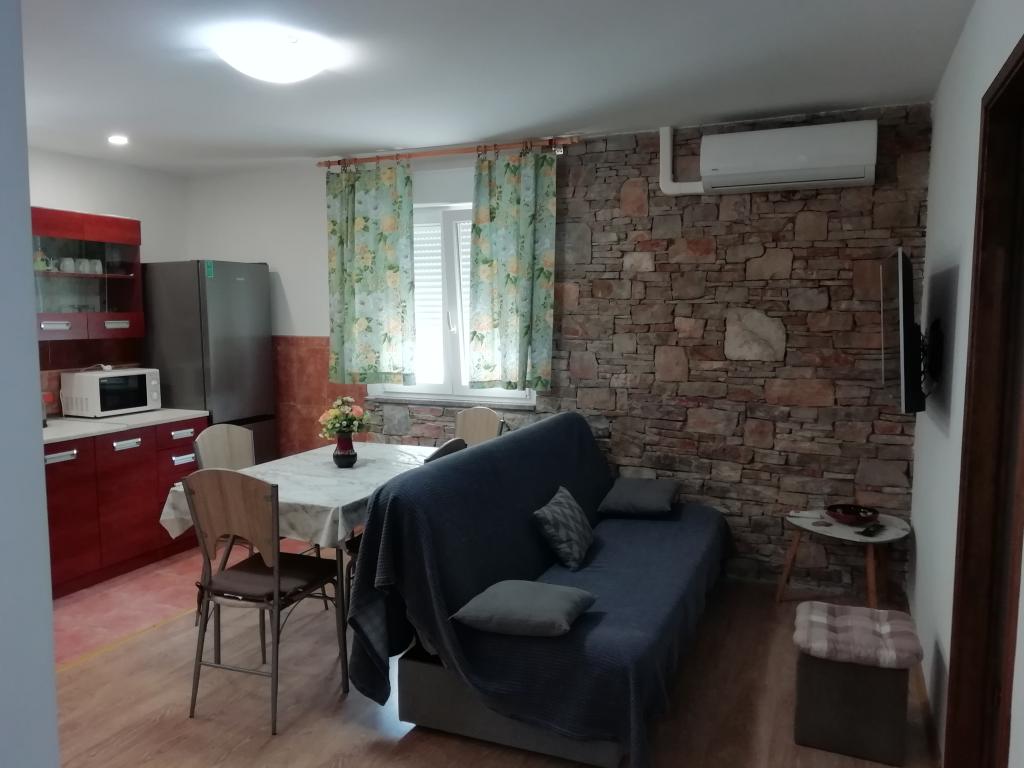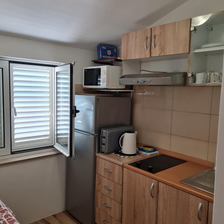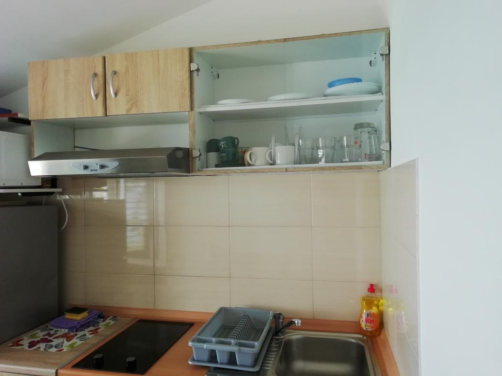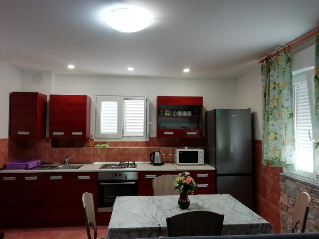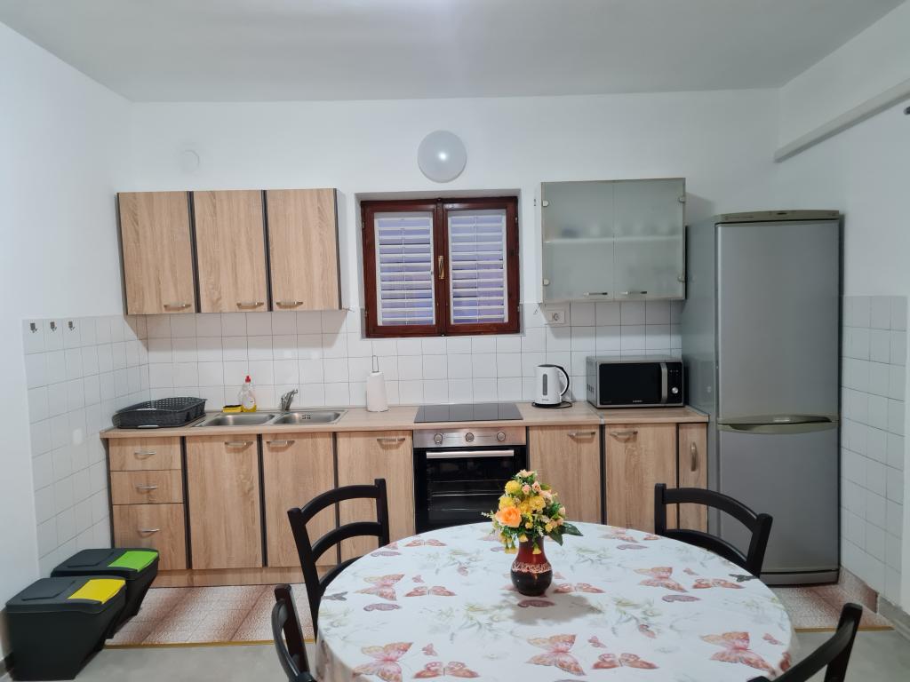 jako uredno, ima sve što je potrebno, čak i povratne boce ako želite kupiti piće koje zahtjeva zamjenu prazne ambalaže za punu. Balkon velik sa pogledom, more doslovno 5 metara od apartmana. Domaćin ljubazan, pazi na detalje, nenametljiv ali cijelo vrijeme na raspolaganju gostima. Ovdje ćete imati potpunu privatnost i maksimalan komfor. Preporuka za domaće maslinovo ulje koje se može mjeriti sa nagrađivanim. P.S. i muž je zadovoljan sve u svemu 10-tka