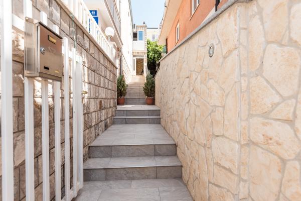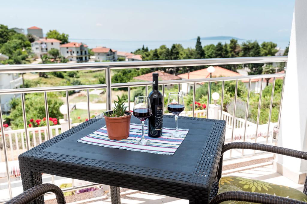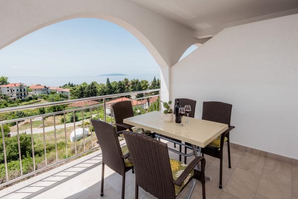 Apartmani su smješteni u središnjem dijelu mjesta koji su udaljeni svega 200m do plaže te centra i ostalih sadržaja koji su potrebni za atraktivan odmor. Uz duž obale se proteže pješačka staza dugačka pet kilometara za one koji uživaju u šetnji i vožnji bicikla. Nedaleko od objekta nalaze se tri zemljana teniska terena za sve ljubitelje tenisa. U kući je smiješteno pet apartmana od kojih svaki ima privatnu terasu ( 10m2 ) s pogledom na more. Apartmani 3, 4 i 5 posjeduju dvije spavaće sobe te parkirnim mjestom u garaži koje je uračunato u cijenu. Dočekat će vas ljubazni domaćini.