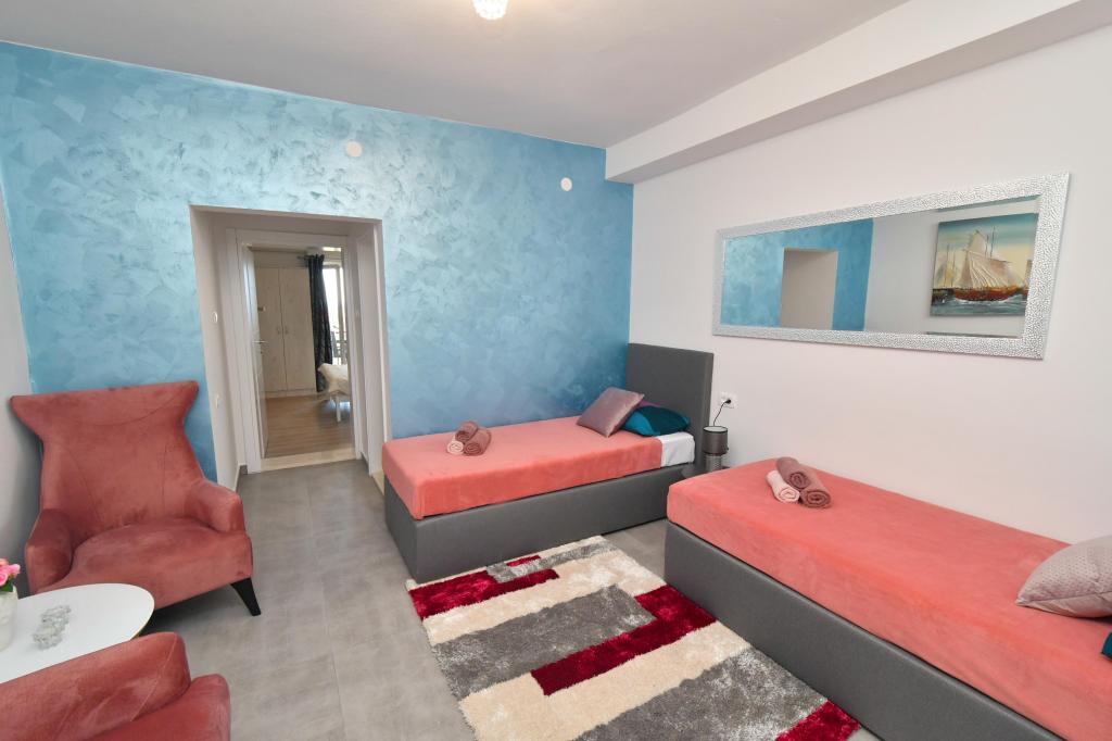 Pročitaj više Smještajne jediniceU cijenu apartmana uključena je klima, parking, , WI-FI, TV led satelitski program, pranje odjeće po potrebi. Ulazak u apartman (check in ) iza 13h, izlazak ( check out ) do 10h. Prilikom rezervacije se uplaćuje akontacija u visini od 30% uplate na račun. Time se smatra rezervacija valjana i sigurna a ostatak 70% se plaća po dolasku u apartman.