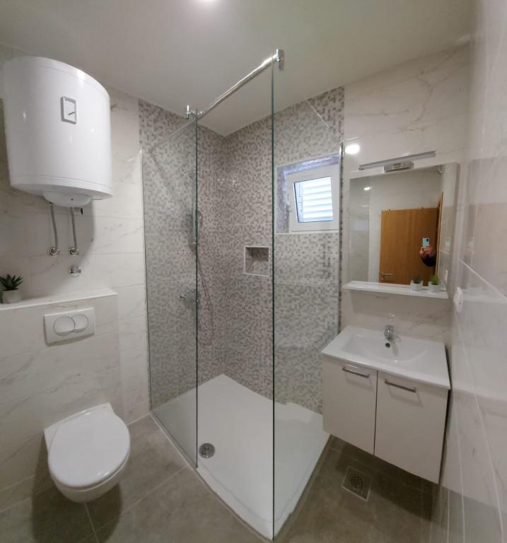 Boravili smo u apartmanu 4+2 i bili smo oduševljeni. Sve je besprijekorno čisto, uredno i novo. Ovaj apartman je prostran s velikim i lijepim kupatilom i pogledom na more. Domaćini su zaista divni i posebno ljubazni. Preporučujemo ovaj smještaj od srca a i njihov domaći liker od višnje. Prelijepe plaze su na samo par minuta hoda na obje strane. Također praktično iza ugla su i barovi, restorani, pekara..itd... Zahvaljujemo se na svemu i do sljedećeg puta!