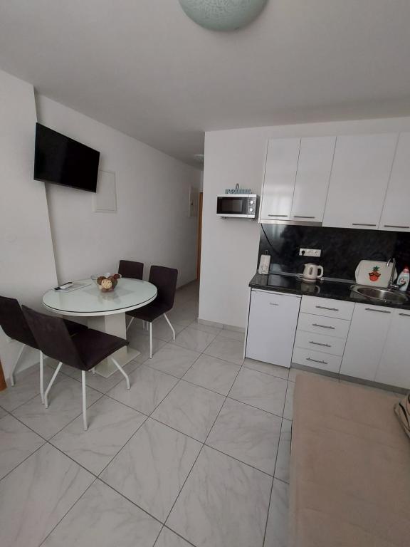 Bili smo gosti apartmana u srpnju 2022. To je idealno mjesto za ljude koji traže relativno mirno mjesto za opuštanje. Vlasnici su vrlo ljubazni, koji ne ometaju boravak, ali su uvijek uslužni i nude svoje proizvode ukusnim pićima. Apartman, Kućište čisto, jedina mana je što ima malo mjesta za osobne stvari u apartmanu 2 + 2 (uzak ormar s nekoliko polica) i vrlo uzak balkon. Vrlo dobra lokacija, blizu plaže i restorana, pekare i trgovine, preporučujem ovaj apartman.