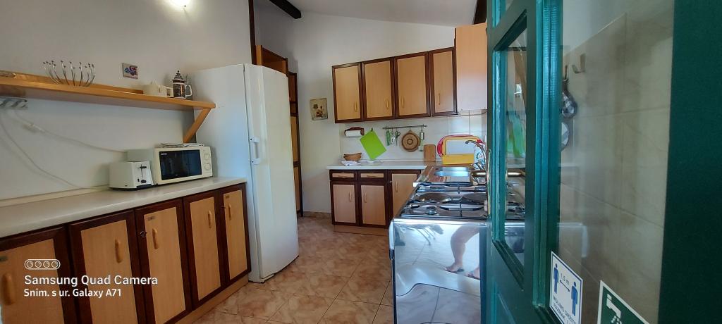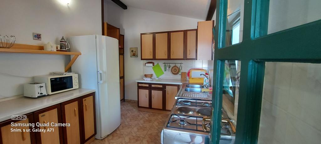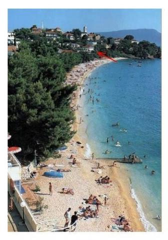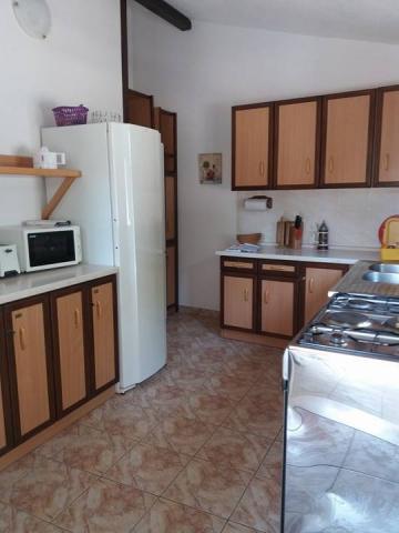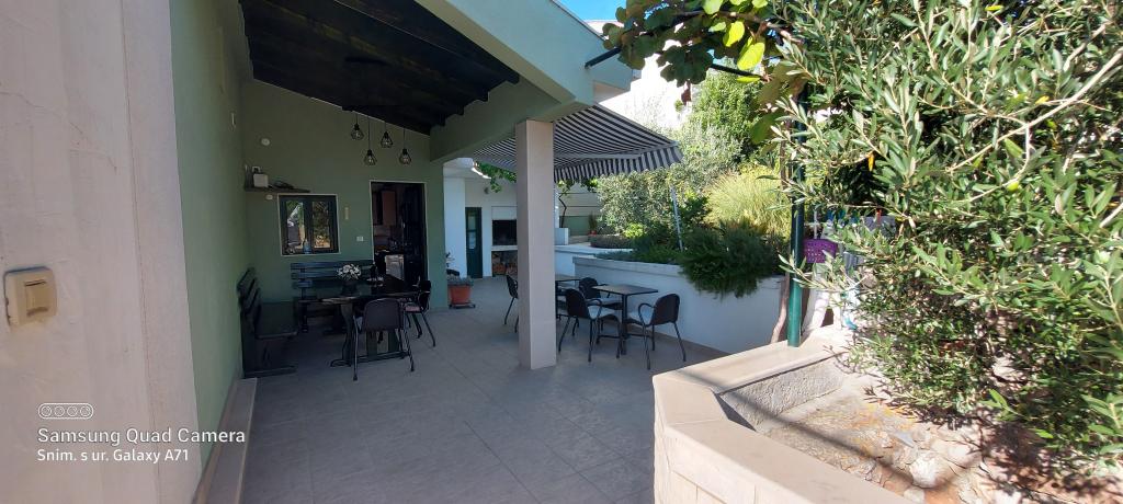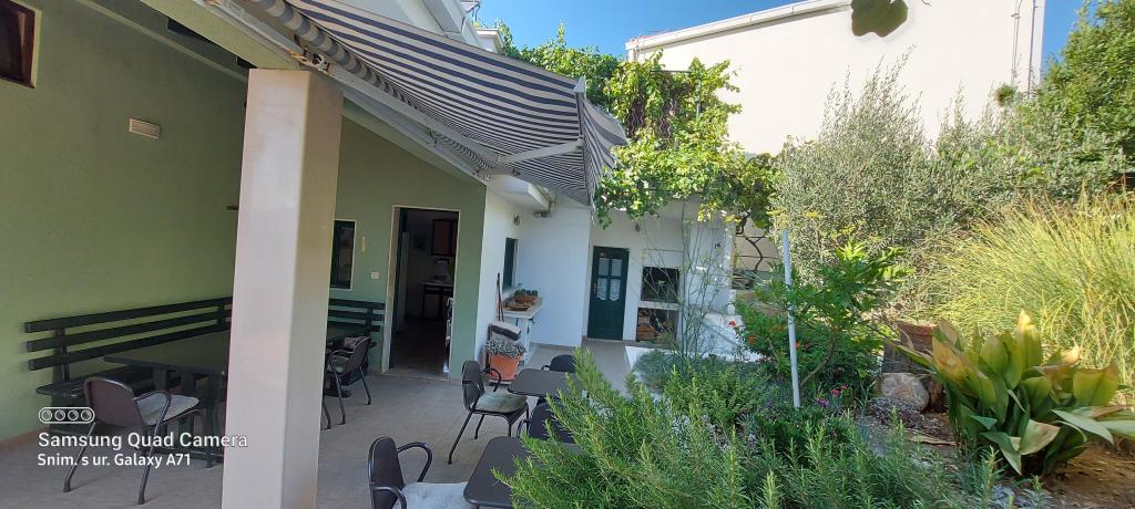 Kuća je u mirnoj uvali, prvi red do mora. U blizini su trgovina, pekara, picerija, restauracija, kafići, mjenjačnica, vodeni park. . Okružena je vrtom s vinovom lozom, kivijem, maslinom i limunom, cvijećem i začinskim biljem koji su gostima na raspolaganju. U vrtu je terasa s pergolom, 70 m2, roštilj i vanjski tuš. Na istoj se etaži nalaze 3 sobe (dvokrevetna, apart.studio i trokrevetna) s vlastitim kupaonicama, klima uređajima, terasama, sobnim hladnjacima, tv i sefovima. U dvorištu kuće nalazi se kuhinja kompletno opremljena s dva velika hladnjaka, zamrzivaćem, štednjakom, mikrovalnom pećnicom, 2 kuhala za vodu, tosterom, aparatom za filter kavu i ostalim potrebnim priborom. Ispred kuće je otvoreni parking a imamo i vlastito parkiralište u hladovini, koje se zaključava i natkriveno je . Kućni ljubimci su dozvoljeni. Gostu je na raspolaganju internet. Kuća se može iznajmiti ili kao 3 pojedinačne cjeline (sobe s upotrebom kuhinje) ili kao jedan trosobni apartman za maksimalno 7 osoba.