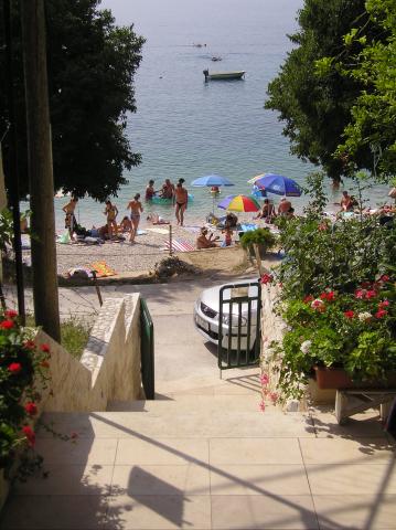 Prekrasno mjesto - prošećite stubama, prijeđite cestu i na plaži ste - mali ali s prekrasnim pogledom. Smještaj je vrlo lijep i čist, kao i kuhinja i vanjska terasa. Obližnje trgovine, restorani, lijepe šetnje oko mora. Vlasnici su divni ljudi, vrlo korisni, brižni i uslužni Preporučujem.