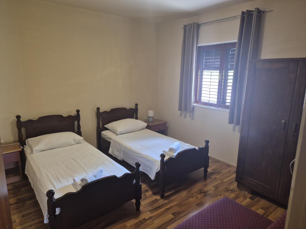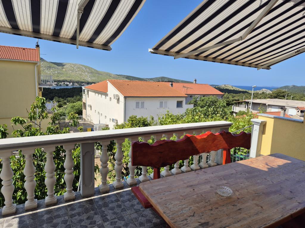 Apartman u obiteljskoj kuci , veliki , komodan , parking velika terasa sa pogledom na more . Apartman namjesten u retro /modernom still. Svaka soba ima svoj wc/ tus. Parking u dvoristu kuce.