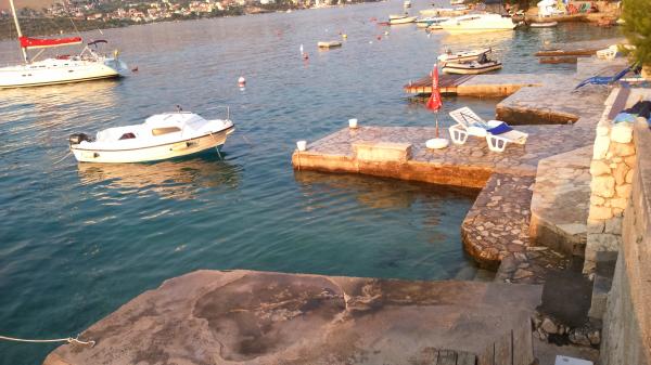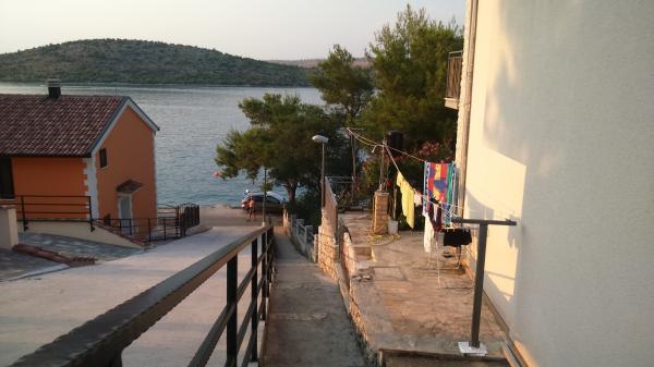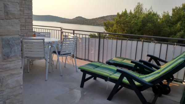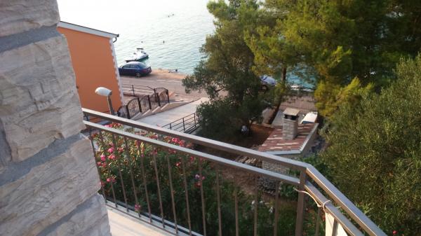 Potpuno uređen apartman na tihom mjestu idealan za kupanje i odmor. Plaža udaljena 30 metara od apartmana. Terasa sa pogledom na more. Klima uređaj uključen u cijenu.