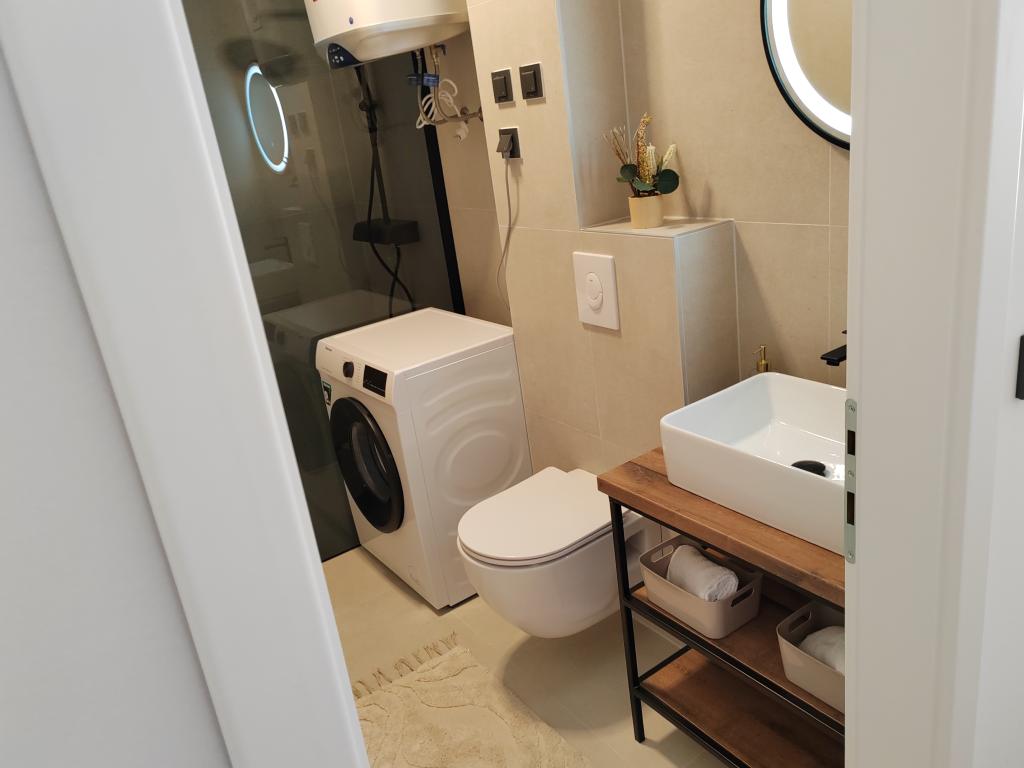 Kompletno uređen apartman u novogradnji na samo 20 m od plaže. Nalazimo se na 5 minuta hoda od centra. Blizina dućana, restorana i kafića. Na plaži beach bar sa ležaljkama, prirodnim hladom i aquaparkom. Objekt ima vlastiti parking odmah ispred terase.