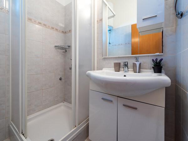 Prvi put smo bili u ovom kraju i jako smo se ugodno iznenadili. Apartman je bio čist i s obzirom na malu kvadraturu imao je sve potrebne stvari. Pogled s terase je apsolutno prekrasan. Privatna plaža sa dvije ležaljke. Mol s kojeg smo stalno skakali. More je kristalno čisto. Vlasnik i ostali članovi obitelji vrlo su ljubazni i uslužni. Sigurno ćemo se vratiti.