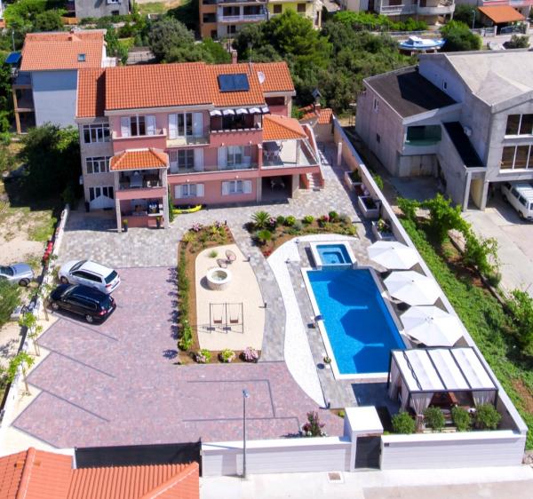 Dobrodošli! Luksuzni apartmani Danica su moderni i novouređeni apartmani koji nude svojim gostima bezbrižni odmor. Savršen spoj luksuza i udobnosti u neposrednoj blizini mora, te uz naš veliki bazen osigurat će vama i vašim najdražima neke prekrasne trenutke i stvoriti sjećanja koja će dugo biti zapamćena. Na raspolaganju imamo tri apartmana Studio App 2 1, Delux App 4 1 i Luxury App 6 2 osobe. Također u ponudi imamo Rent a boat i Cocktail & Caffe bar na plaži! Posjetite nas i započnite stvarati uspomene! Radujemo se vašem dolasku!