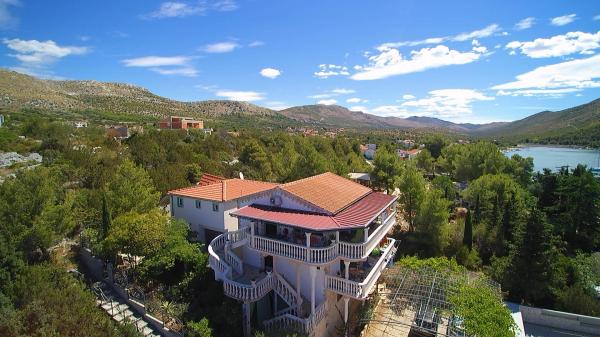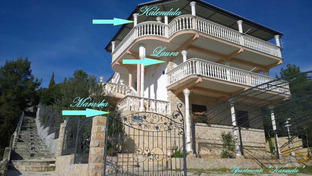 Dobro došli u Apartmane Karmela! Kuća je smještena u mirnom predjelu Grebaštice, u okruženju mediteranskih vrtova, dok se preko uvale nalazi gusta borova šuma - idealno mjesto za bijeg od gradske vreve. U svakom od naša tri apartmana možete provesti relaksirajući odmor sa svojim obiteljima, djecom i prijateljima. Kristalno čisto more je na udaljenosti od samo 30 m. , dok se lokalne šljunčane plaže nalaze od 100 do 300 m od kuće. Grebaštica, osim svojih zanimljivosti (obrambeni zid Bedem, crka Sv. Petra i Marije, izvor Kanela) ima i vrlo dobru geografsku poziciju, pa tako za vrijeme svog boravka imate mogućnost posjetiti i brojne obližnje prirodne atrakcije, otočiće i povijesne znamenitosti poput: Primošten (15 min), Šibenik (20min), Knin i Split (1h), Dubrovnik (4 h) kao i predivne nacionalne parkove: Slapovi Krke (50 min), Kornati (30 min do mjesta polaska broda), Plitvička jezera (2, 5 h)…. . Bit će nam zadovoljstvo ugostiti i Vaše kućne ljubimce!