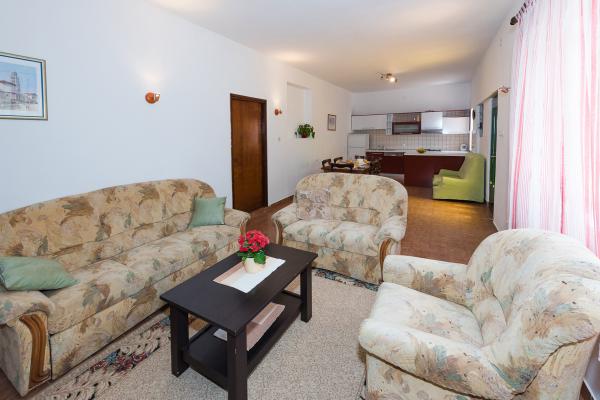 Obiteljska kuća za odmor sa 3 komforna apartmana u centru Grebaštice. Okućnica od 2000m2 sa osiguranim parkingom. Plaza, restorani, dječije igralište, trgovina, bar i sl. na 70-100m udaljenosti od kuće. Apartman A1-4/4 osobe, površine 70m2 i 65m2 terase. ApartmanA2-4/2 osobe, površine 60m2 i 12m2 terase. Aprtman A3-2/2 osobe, 49m2 i 10m2 terase.