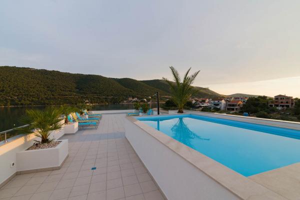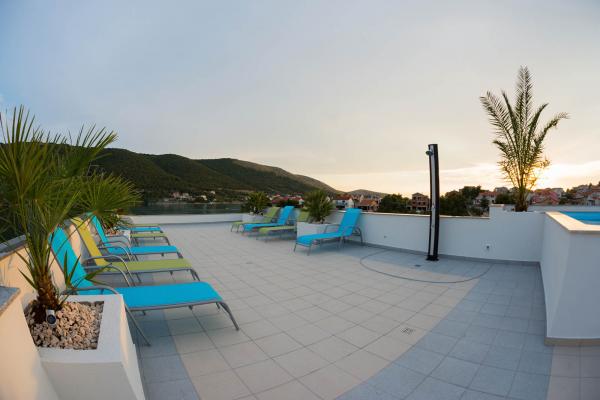 Novouredeni, moderni apartmani smjesteni u prekrasnoj uvali Grebastica. Na vrhu naseg objekta nalazi se prostrana terasa sa bazenom.