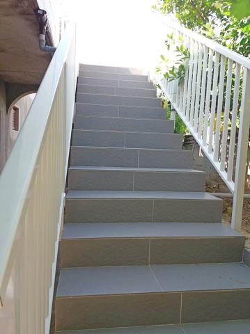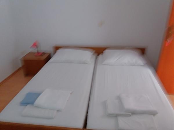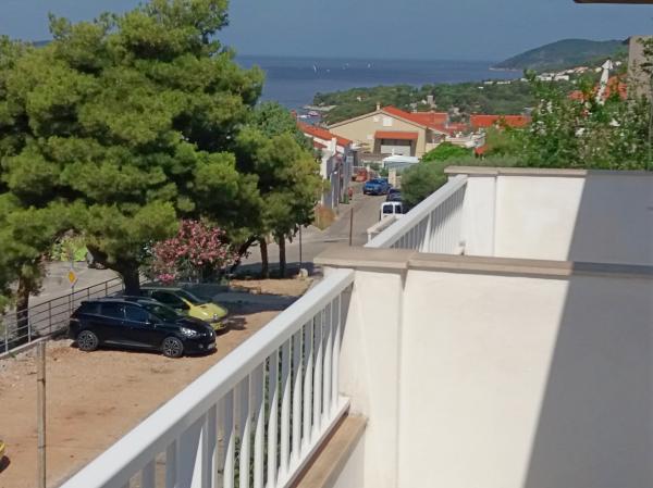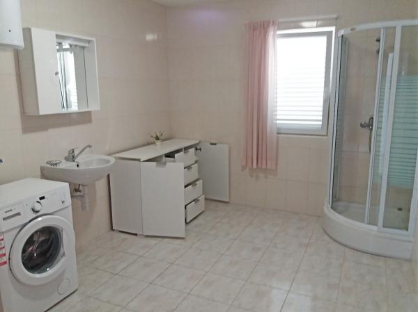 Kuća je novogradnja i udaljena od mora 600 m. Apartman se nalazi na zasebnom katu i imate vlastiti privatni ulaz. Sve je moderno uređeno i opremljeno za Vaš ugodan boravak, svaka soba ima vlastitu terasu sa prekrasnim pogledom. Apartman sadrži kuhinju s blagovaonom i dnevni boravak koji također ima svoju terasu s pogledom na more. Na raspolaganju Vam je cijeli apartman s tri sobe, četiri terase i dva kupatila, kuhinjom i dnevnim boravkom. Parking nije privatan, u ulici ima dovoljno mjesta za parkiranje koji su zajednički za sve susjede. Do prekrasne šljunčane plaže dolazi se pješke za manje od 10 minuta. U naselju se nalazi trgovina, a drugi sadržaji (banka, ljekarna) su u centru grada udaljenom 800 m.