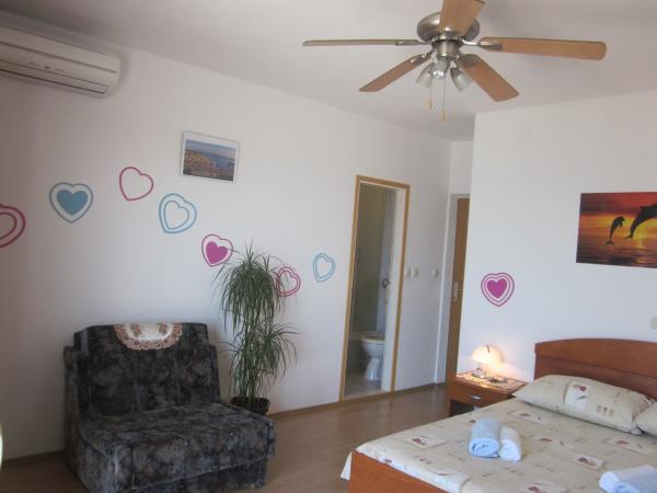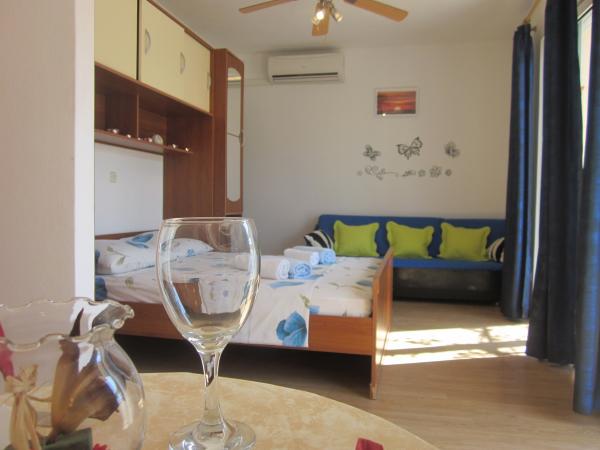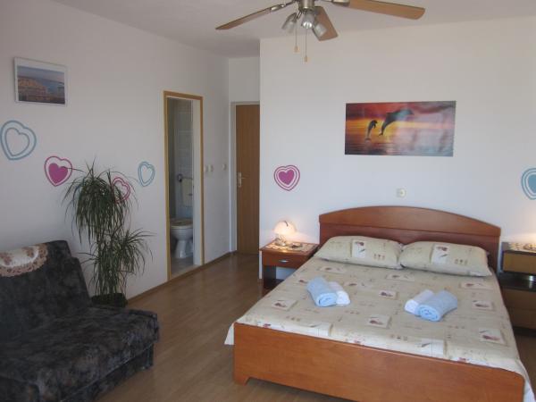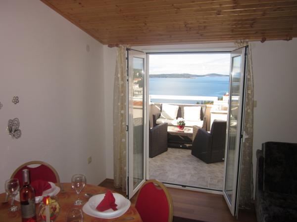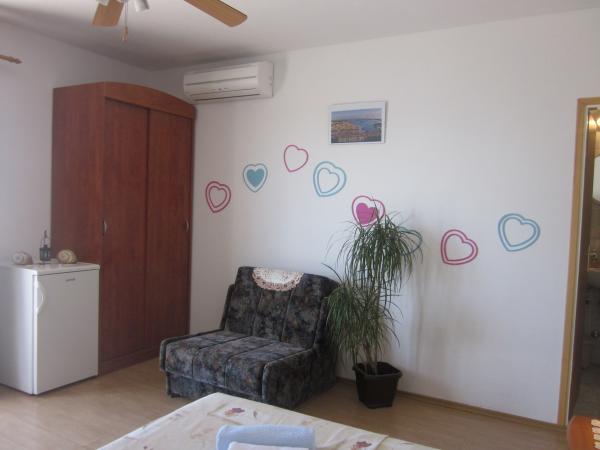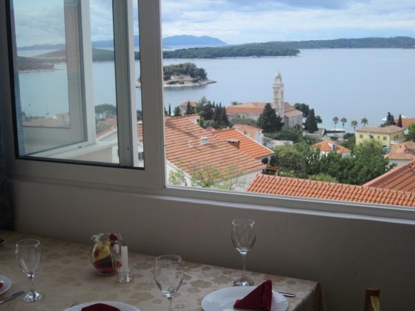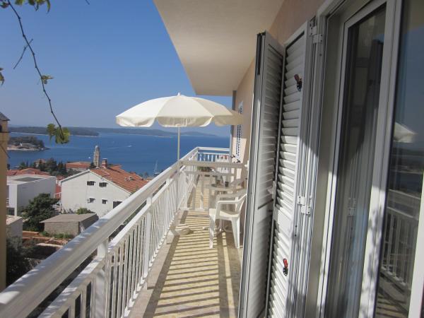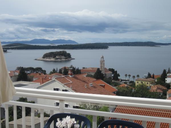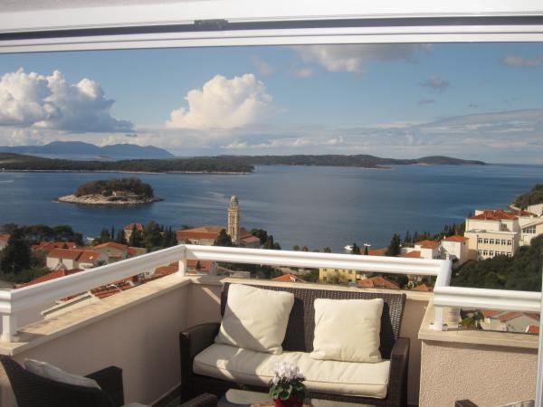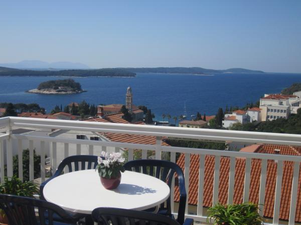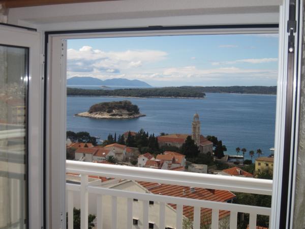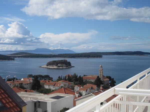 Objekt se nalazi na samom ulazu u grad Hvar,5 -10 minuta laganog hoda od centra grada i plaže,na tihom i mirnom predjelu s prekrasnim pogledom na more,grad,paklene otoke i tvrđavu. Apartmani se nalaze na prvom katu novosagrađene obiteljske kuće,kompletno su opremljeni i svi imaju terase s pogledom na more,grad i otoke,u vrtu se nalazi grill za sve goste,a uz kuću je i parking,sve goste častimo pićem dobrodošlice. Dolazak gosta u apartman je od 14 sati,a odlazak do 10 sati.