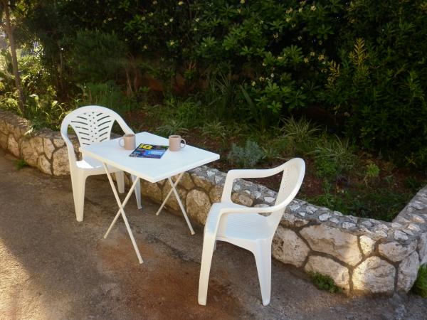 Novo opremljeni apartmani su smješteni u obiteljskoj kući u mirnom dijelu Hvara, 20 min hoda od stare gradske jezgre. A1 (4 osobe) je na 1. katu sa velikom terasom i pogledom prema moru te pruža užitak prekrasnog zalaska sunca. A2 (4 osobe) je u prizemlju u ograđenom dvorištu sa mogućnošću sjedenja ispred njega. Svaki apartman ima jednu spavaću sobu i ležaj na izvlačenje u dnevnoj sobi. Parkirališno mjesto je besplatno isto kao i WiFi usluga. Najbliža prirodna šljunčana plaža je u uvali udaljenoj 200 m i do nje se dolazi pješice. Druga gradska plaža, šljunčana i stijene, udaljena je 10 min hoda. Smještaj je pogodan za obiteljsko ljetovanje, siguran je za djecu (ograda), a i društvo do 8 osoba je dobrodošlo. Do Hvara se stiže katamaranima direktno iz Splita (1 sat vožnje) odnosno trajektom (2 sata vožnje) preko Starog grada iz kojeg vozi i lokalni autobus (20 min. vožnje) do centra Hvara. Najbliži aerodrom je u Splitu. Katamarani voze i prema Korčuli, Mljetu i Dubrovniku.