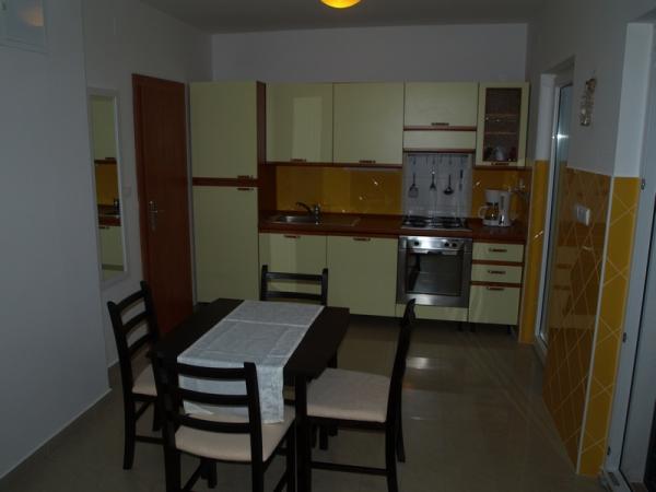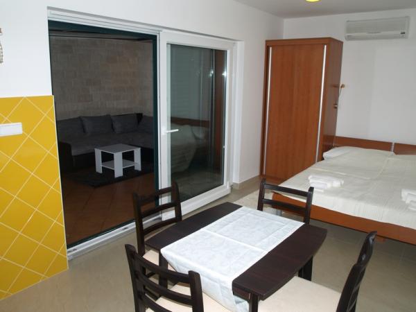 Kompletno opremljen Studio apartman u prizemlju stambene zgrade, sa dijelomičnim pogledom na more. Udaljen 5 minuta hoda od najljepše plaže - Pokonji Dol. Studio - apartmam u jednoj prostoriji ima prostor za spavanje (bračni krevet) , kuhinju i trpezarijski stol sa četiri stolice . U drugoj prostoriji je kutna garnitura sa TV-om. Kuhinja uključuje: štednjak, hladnjak sa zamrzivačem, aparat za kuhanje kave, mikrovalnu, pribor za jelo i sl... Kupaonica je sa WC i tušom. Ispred apartmana je mala ne natkrivena terasa od 7m2 sa stolićem i stolicama.