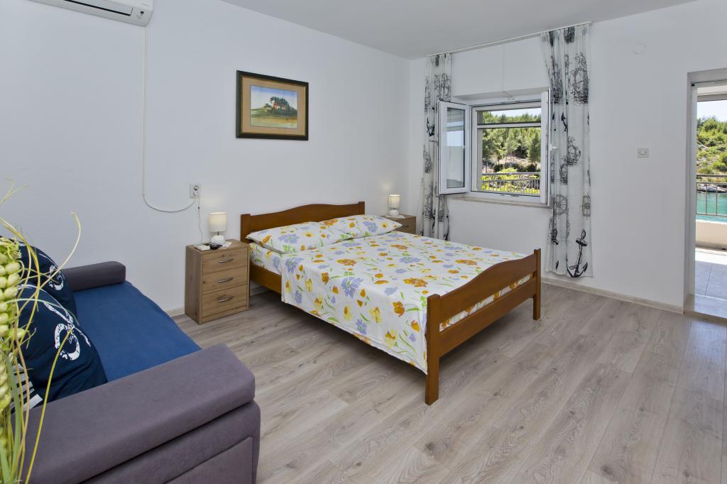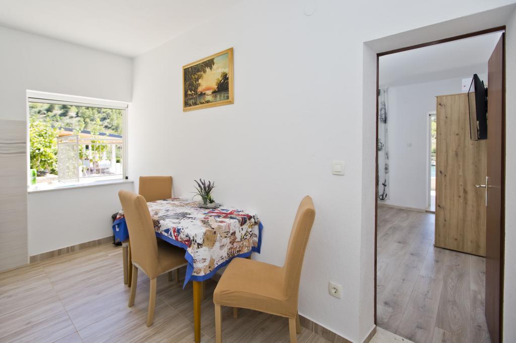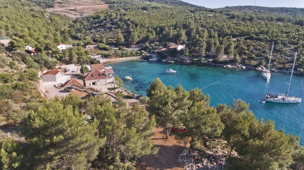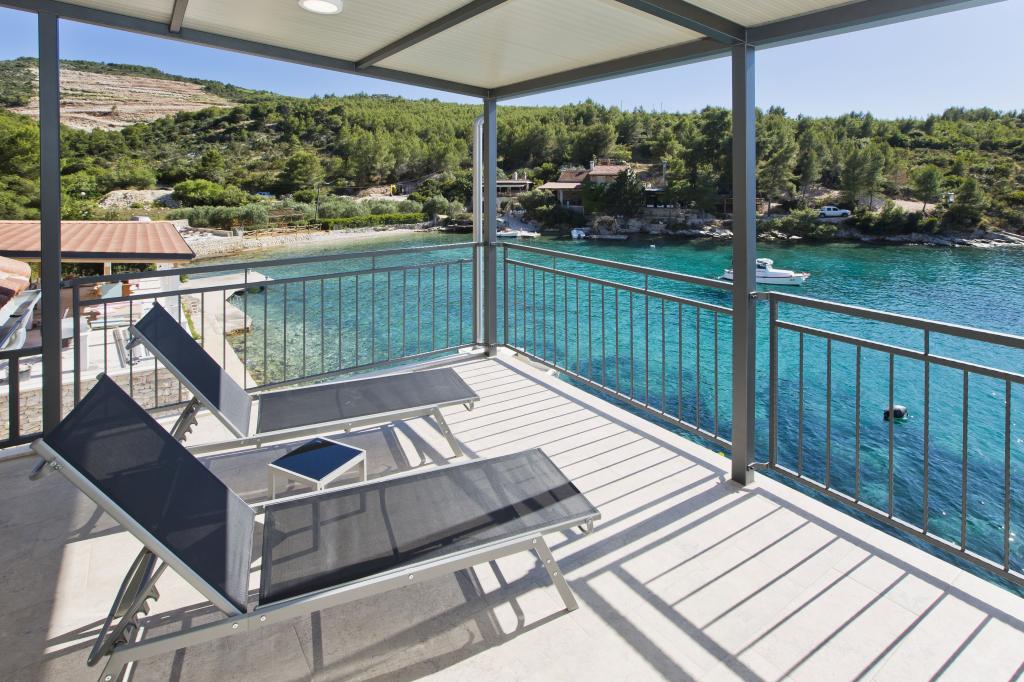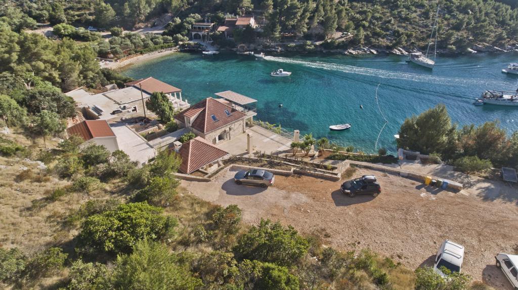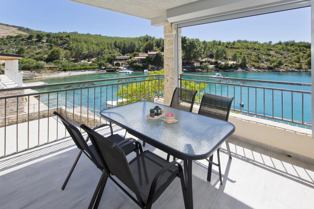 Kompletno i suvremeno uređeni apartmani u mirnoj uvali 3 km udaljenoj od grada Hvara. Kuća je smještena u blizini kampa Vira, preko puta konobe Ringo. Izvrstan izbor za miran odmor na samom moru, a opet blizu svih sadržaja. Do kuće vodi privatna cesta kojom dolazite ispred samog smještaja, a moguć je i prilaz s mora. Ispred kuća u kojoj se nalaze apartmani nalazi se plaža koja pruža potpunu privatnost. U cijenu smještaja uključene su ležaljke i suncobrani. Na plaži se nalazi tuš, a dostupan je i vez za čamac. Apartmani se sastoje od sanitarnog čvora, kuhinje, spavaće sobe i velike terase koja se nalazi iznad samog mora. Također ističemo vanjski roštilj, prirodnu hladovinu, prekrasan pogled i vlastiti parking. Plaža je šljunkovita, a bočne strane uvale imaju ravne kamene ploče pogodne za sunčanje, zaštićene od neželjenih pogleda.