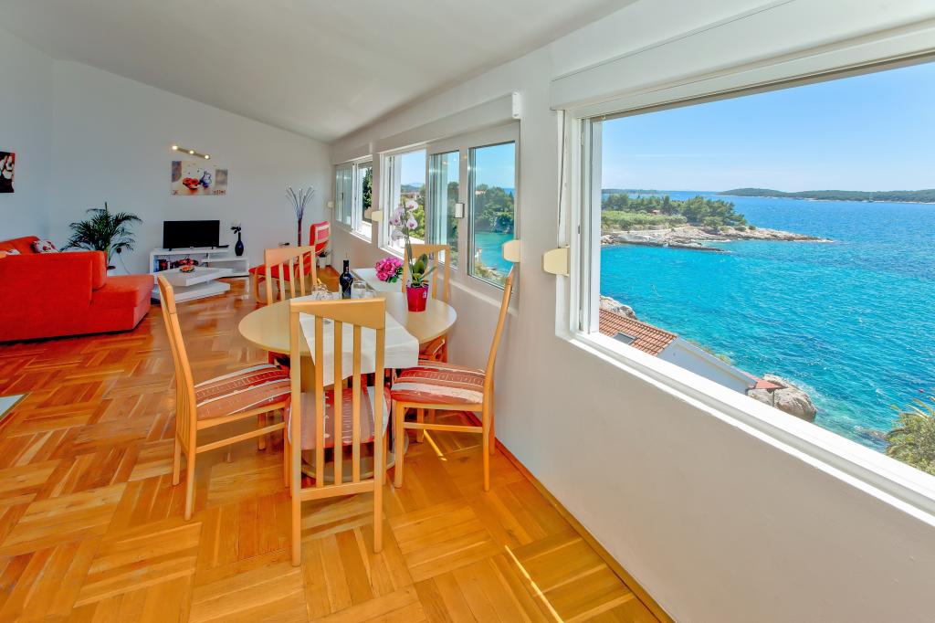 Kuća se nalazi u najljepšem dijelu grada Hvara uvali Podstine. Uvala je smještena u mirnom krajoliku okruženom borovima i čempresima (u našoj uvali nalazi se i rezidencija predsjednika republike). Od centra grada udaljeni smo 15 minuta hodanja kroz lijep predio grada (tu se nalaze hoteli, centralna plaža sa puno različitih sadržaja, te krasna borova šuma.) Ispod naše kuće nalazi se plaža (kuća je u neposrednoj blizini mora) do koje se dođe kroz naš vrt. U blizini kuće nalazi se ljiep mali hotel Podstine koji pruža mogučnost konzumiranja raznih kulinarskih specijaliteta, korištena bazena, saune... Također u našoj blizini se nalazi ronilački centar, tenis tereni. Samoposluga se nalazi 5 min. udaljenosti od nas.