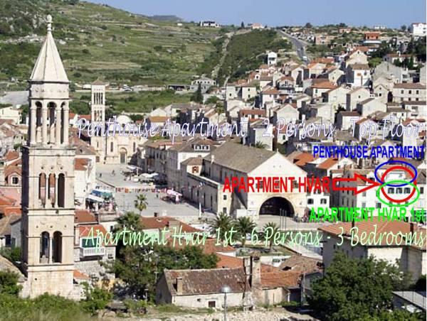 U neposrednoj blizini, na minutu hoda nalaze se kafići, restorani, dućani i pristanište za katamaran. Ispred kuće nalaze se taxi brodovi za odlazak na obližnje otočiće i plaže Stipanska, Ždrilac, Palmižana, Vlaka, kao i brodovi koji imaju jednodnevne ekskurzije. Plaže se nalaze na tri minute hoda od apartmana. Neposredno uz apartman, na dvadesetak metara udaljenosti nalazi se ARSENAL, koji je bio pristanište i remont za venecijanske trgovačke i ratne galije. Uz Arsenal se nalazi jedno od najstarijih kazališta u Europi. Ispred apartmana je prekrasna šetnica uz morsku obalu, gdje je smješten franjevački samostan sa svojom galerijom slika, na dvije minute hoda nalazi se prekrasni hvarski trg Sv. Stjepana, sa svojom velebnom katedralom.