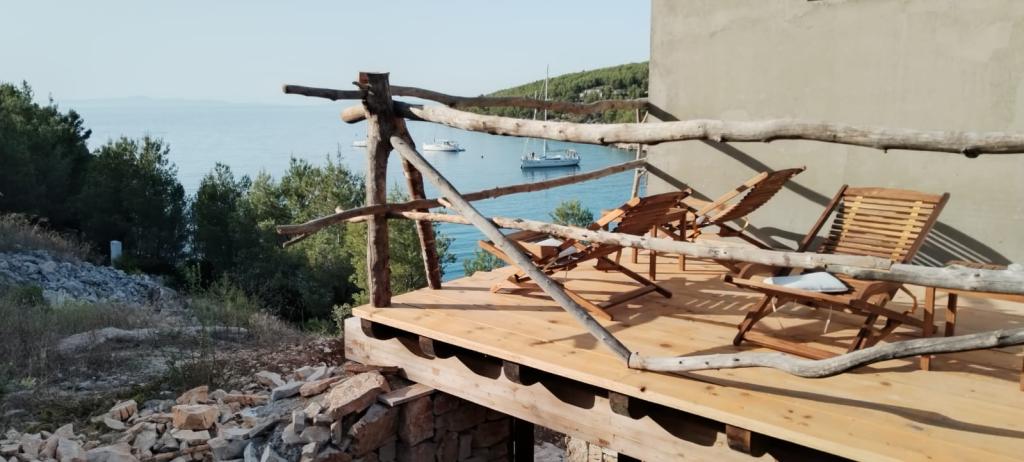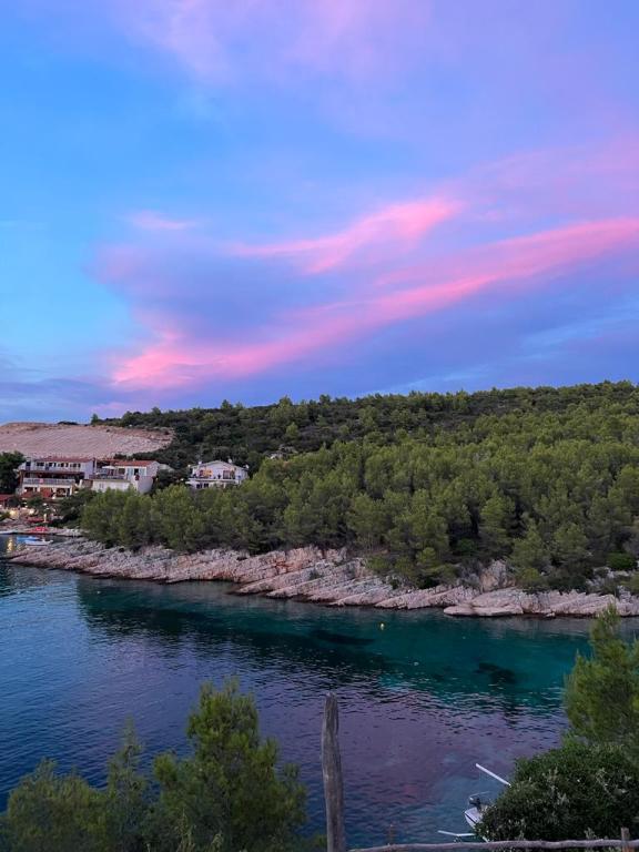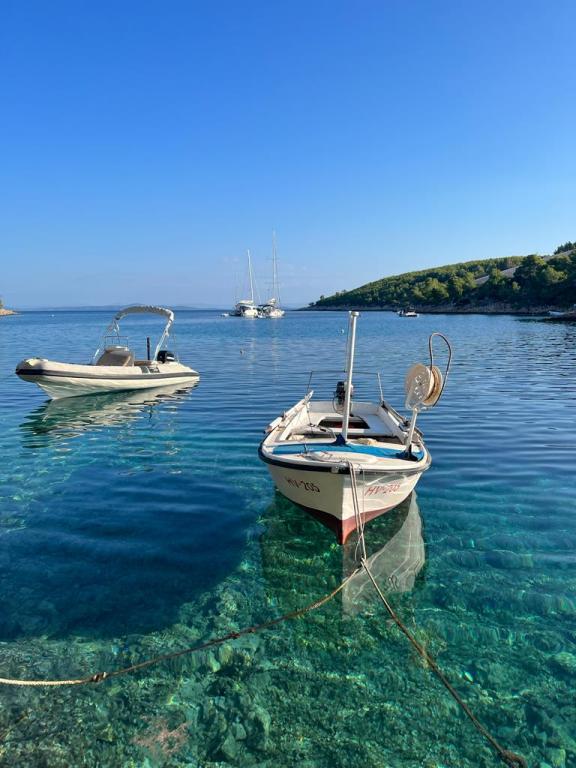 4 km od grada Hvara, nalazi se uvala Jagodna, Primitivo bay Hvar. Privatno,mirno i opuštajuće mjesto, 200 m od ceste, samo 20 m od mora! Kuća za odmor za 8 gostiju, 4 sobe sa vlastitom kupaonicom,sve sobe sa pogledom na more i uvalu,velika terasa i balkon te prostrana kuhinja+grill. U svakoj sobi nalazi se veliki krevet 180x200, zasebna kupaonica, garderoba i radni stol. Idealno mjesto za odmor i opuštanje, povoljno za obitelji sa djecom,i za skupine prijatelja,svi kućni ljubimci su dobrodošli! Grad Hvar nudi sve sadržaje za pravu zabavu, restorane i prekrasne ljetne noći, udaljen je 5 min automobilom. Naša uvala nudi mir i opuštanje, te uživanje u čistom moru, te nezaboravnim svitanjima i zalascima sunca. Od buđenja do uživanja u prekrasnom moru, potrebna vam je samo jedna minuta! Moguć je privez svih vrsta morskih plovila. Radujemo se vašem dolasku!