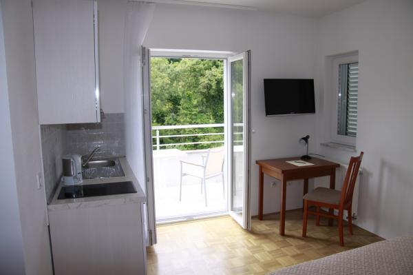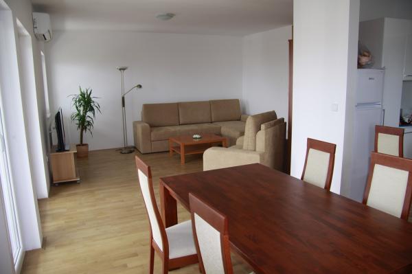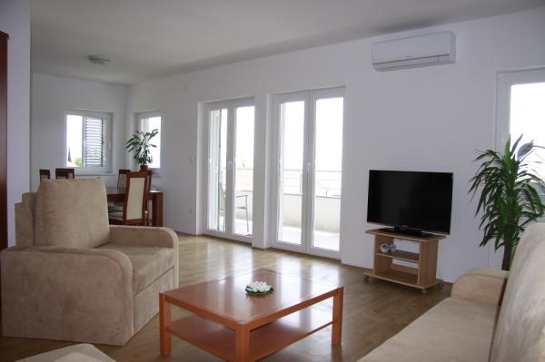 Apartman je jako dobro sreden, sve izgleda jako cisto i uredno. Sve je novo i dobrog kvaliteta, pocev od samih ulaznih vrata pa do velike terase sa pogledom na more. Lezaji, ormari, kuhinjska oprema, tv, stolovi i ostalo sve je visokog kvaliteta. Kupatilo, takodje ostavlja dobar utisak. Poseban dojam daje domacin, ljubazan, komunikativan, uvjek na usluzi, odusevio sam se sa njegovim znanjem vise jezika. Objekat bih toplo preporucio svakom, nesto sto treba vidjeti i dozivjeti. Sve je pri ruci, blizina mora, centra, restorana i sl. Apartman lezi na jako mirnom mjestu, okruzen zelenilom, sto odise cistim zrakom. S obzirom da je sve novo izgradeno, neki detalji mozda nedostaju, svaka primjedba je dobro dosla i gazda to rado prihvata, sto sam sam uocio. Apartman je za desetku.
